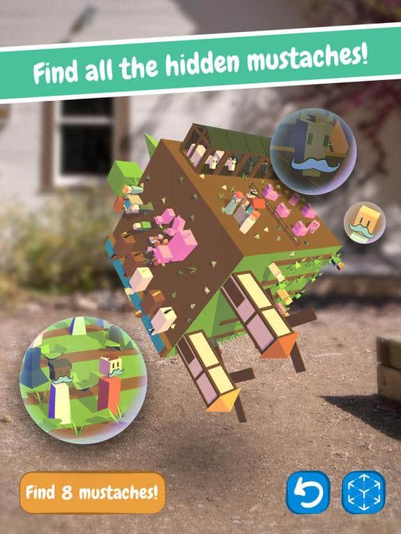 Encuentra el Bigote – un juego de rompecabezas adictivo para IOS donde buscarás el bigote. Este juego es perfecto para toda la familia, donde con la ayuda de la realidad aumentada podrás llevar el juego a tu mundo. En este juego, tu tarea principal será explorar un mundo interesante y único, y buscar todos los bigotes. Encuentra el bigote en los lugares más inesperados y rota el mundo 360 grados para explorarlo completamente. Completa los 16 niveles únicos y encuentra todos los bigotes ocultos. La ubicación del bigote cambiará cada vez que inicies el juego de nuevo.