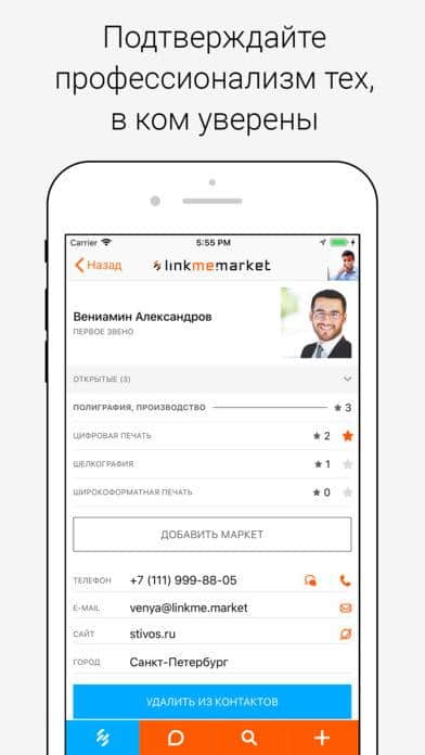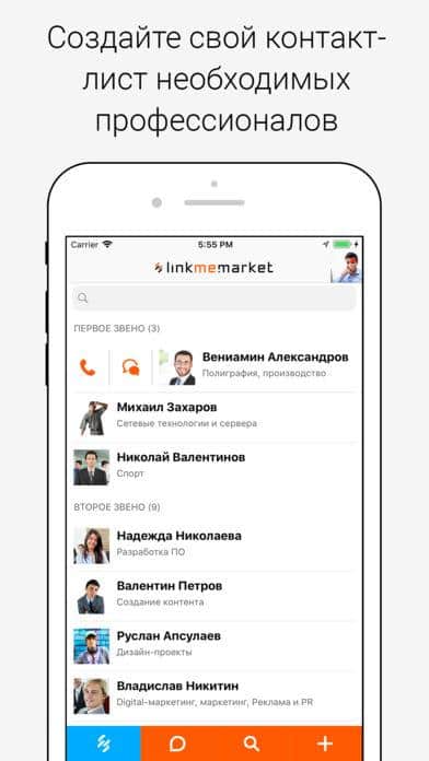 Linkme.market se puede considerar un análogo electrónico de la típica recomendación de boca a boca o la confirmación en red de la teoría de los cinco apretones de manos. Cualquiera puede acceder a la aplicación y especificar su profesión, junto con sus datos de contacto. Así se forma una base de datos abierta de miembros de diversas profesiones, hecha en el formato de un cuaderno. Todos pueden ver no solo la información sobre quiénes son sus amigos, sino también información similar sobre los amigos de sus amigos. Esto puede ser muy útil en situaciones en las que buscas un especialista en cualquier campo de actividad y no quieres contactar a personas al azar. Los usuarios forman gradualmente una clasificación de los mejores trabajadores en sus ciudades, lo que también simplifica significativamente la búsqueda. La honestidad de sus recomendaciones, sin duda.