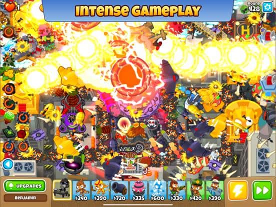 Bloons TD 6 – acción para IOS, creada en el género de defensa de torres. En este juego ayudarás a los monos a explotar las bolas de colores que aparecerán en el horizonte. Coloca los monos en varios lugares y dispara a las bolas, haciendo que desaparezcan más rápido de lo que llegan al abismo. Mejora y optimiza tu personaje haciéndolo más poderoso, lo que te permitirá destruir más bolas. Desarrolla tu estrategia en la batalla y desbloquea nuevos niveles y nuevos personajes.