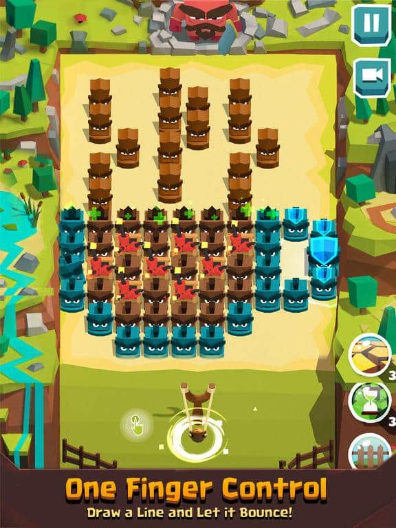 RoundRick - Rompe Ladrillos – un adictivo juego de arcade para IOS donde salvarás el mundo arruinado de Marble. En este juego necesitas derrotar al monstruo malvado, y necesitas dibujar en la pantalla una línea, para que la pelota rebote en ellas y destruya todos los obstáculos en el camino. Lanza la pelota en vuelo y destruye tantos minions del villano infligiendo golpes devastadores. Completa emocionantes niveles y misiones y obtén recompensas y bonificaciones. En total, este juego cuenta con 100 niveles de acción, que tendrán lugar en 3 mundos diferentes.