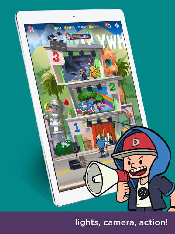 Hollywhoot: Parodia Ociosa – cámara, acción. Parodiar a los héroes de películas más famosos y ver qué sucede. Conviértete en el mejor productor de tu época con un mundo donde los superhéroes apenas están surgiendo. Gana premios prestigiosos y lleva tu nivel de artesanía cinematográfica a nuevas alturas. El futuro de la industria del cine está en tus manos. Toma tu megáfono y reúne a tu elenco y crea una película 100% certificada por Cartometry. Desarrolla más de 40 parodias de actores legendarios de Hollywood y disfruta de las hilarantes referencias a películas famosas.