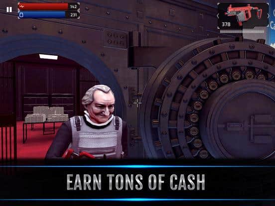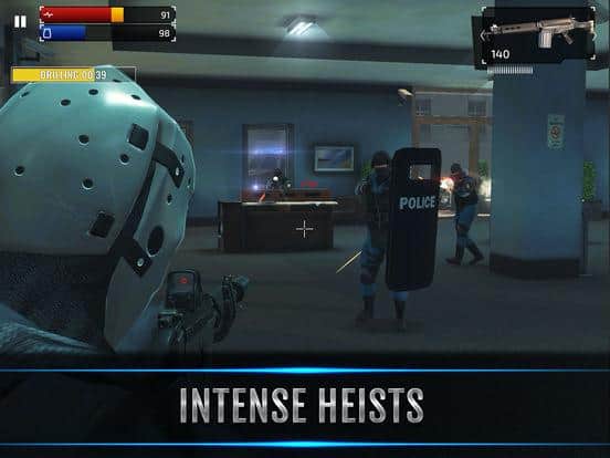 Shooter de Heist armado para IOS donde controlas una pandilla que comete robos. Toma el control de la pandilla, vístelos y equípate a tu propia discreción y roba, mientras intentas realizar todo de manera clara y armoniosa y salir de una persecución. Sigue más de 70 misiones diferentes que serán más complejas cada vez, y diferentes de las anteriores, dándote la sensación de robo como la primera vez. El juego te agradará con excelentes gráficos, buen sonido y control con soporte para 3D Touch. A lo largo del juego, actualiza y mejora tus armas y compra más modernas.