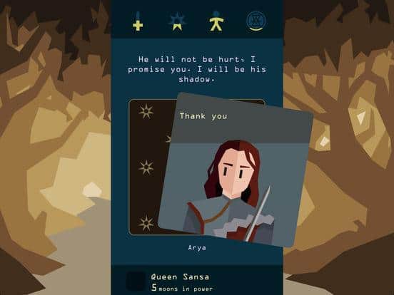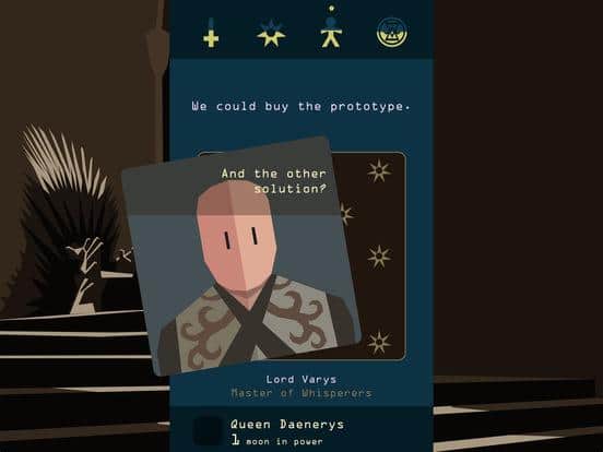 Reigns: Juego de Tronos – un juego creado basado en la popular serie "Juego de Tronos". En este juego tu poder decidirá quién de los candidatos es digno del trono de hierro. Siguiendo las profecías de la sacerdotisa Melisandre, en el trono de hierro están Cersei Lannister, Jon Snow o Daenerys Targaryen. Tienes que sumergirte en un mundo de complejas intrigas y decidir quién obtendrá el trono de los Siete Reinos. Derrota a tus oponentes políticos, izar la primera bandera sobre todo el mundo y apoderarte del poder en tus manos. Toma las decisiones correctas porque de ellas dependerá el destino de los Siete Reinos.