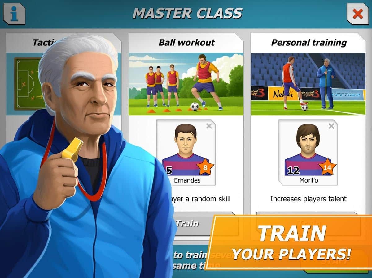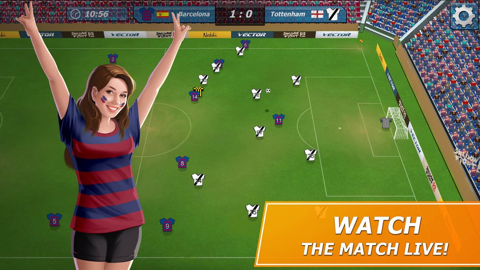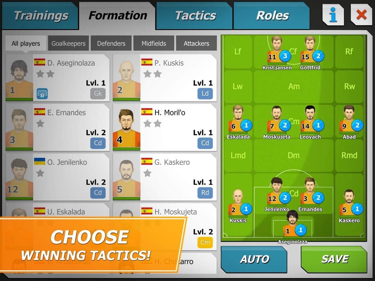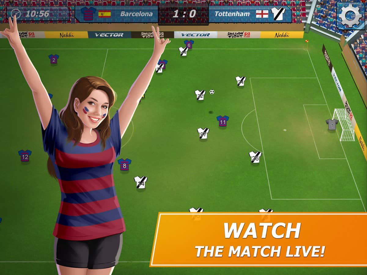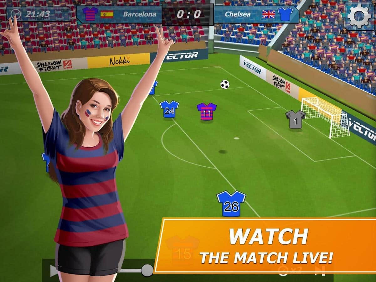 11x11: El gerente de fútbol es un juego deportivo, donde tomarás el mando del club de fútbol. En este juego te convertirás en el entrenador de tu club de fútbol, que debe llevar a la victoria en el campeonato principal. Elige tu equipo, una forma de fútbol única y sácala al campo, participando en partidos amistosos. Construye para tu equipo una base de entrenamiento, un enorme estadio y un hotel. Desarrolla tu plan y tácticas de juego y gana partidos, subiendo más alto en la clasificación. Enriquece tu equipo con nuevos jugadores que tendrán nuevas habilidades. Observa los partidos actuales y reemplaza jugadores.