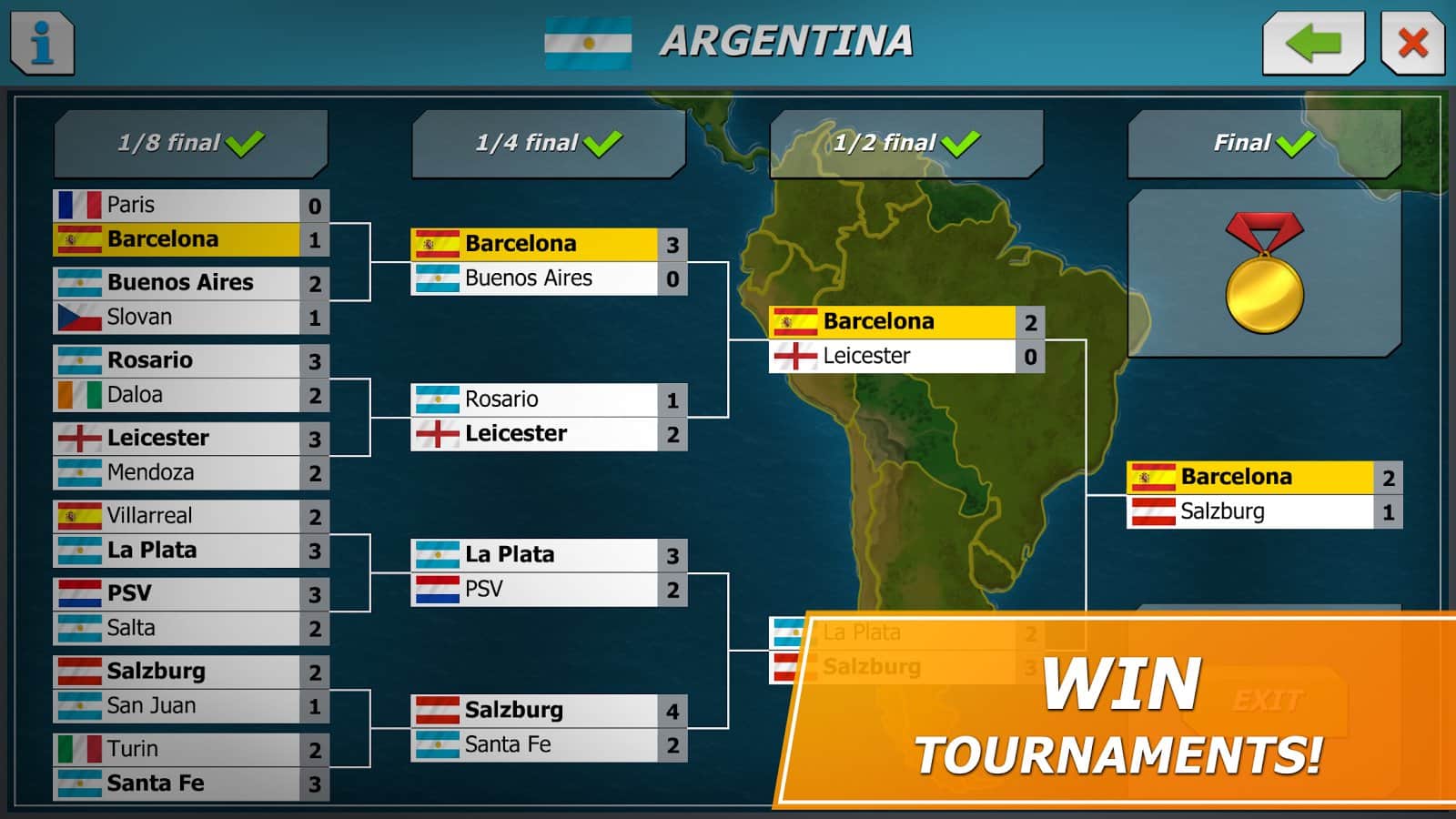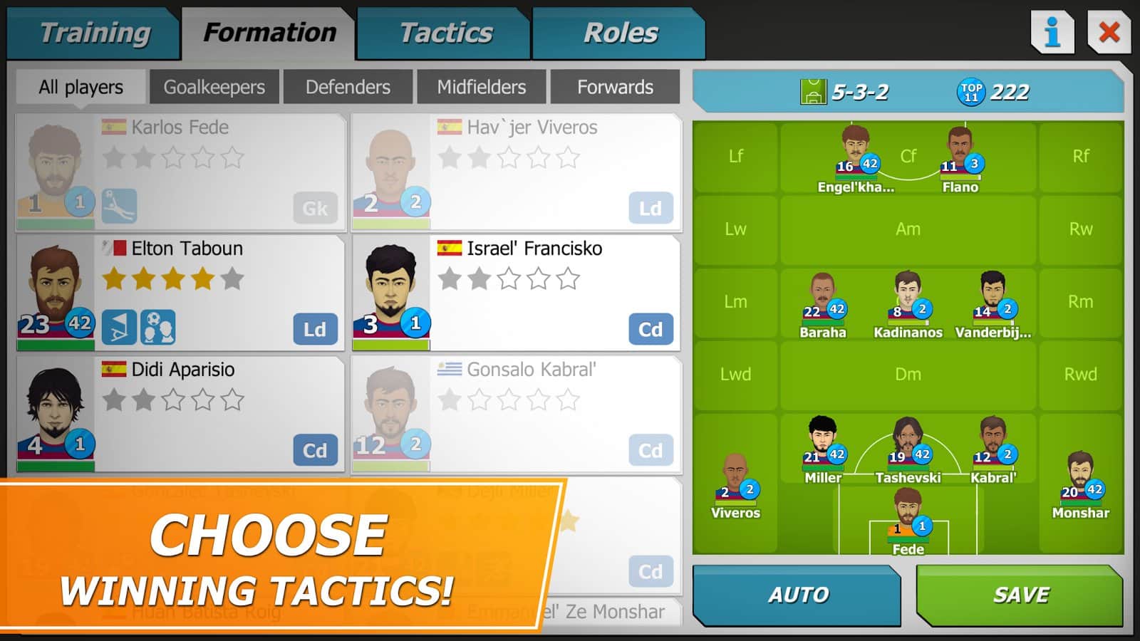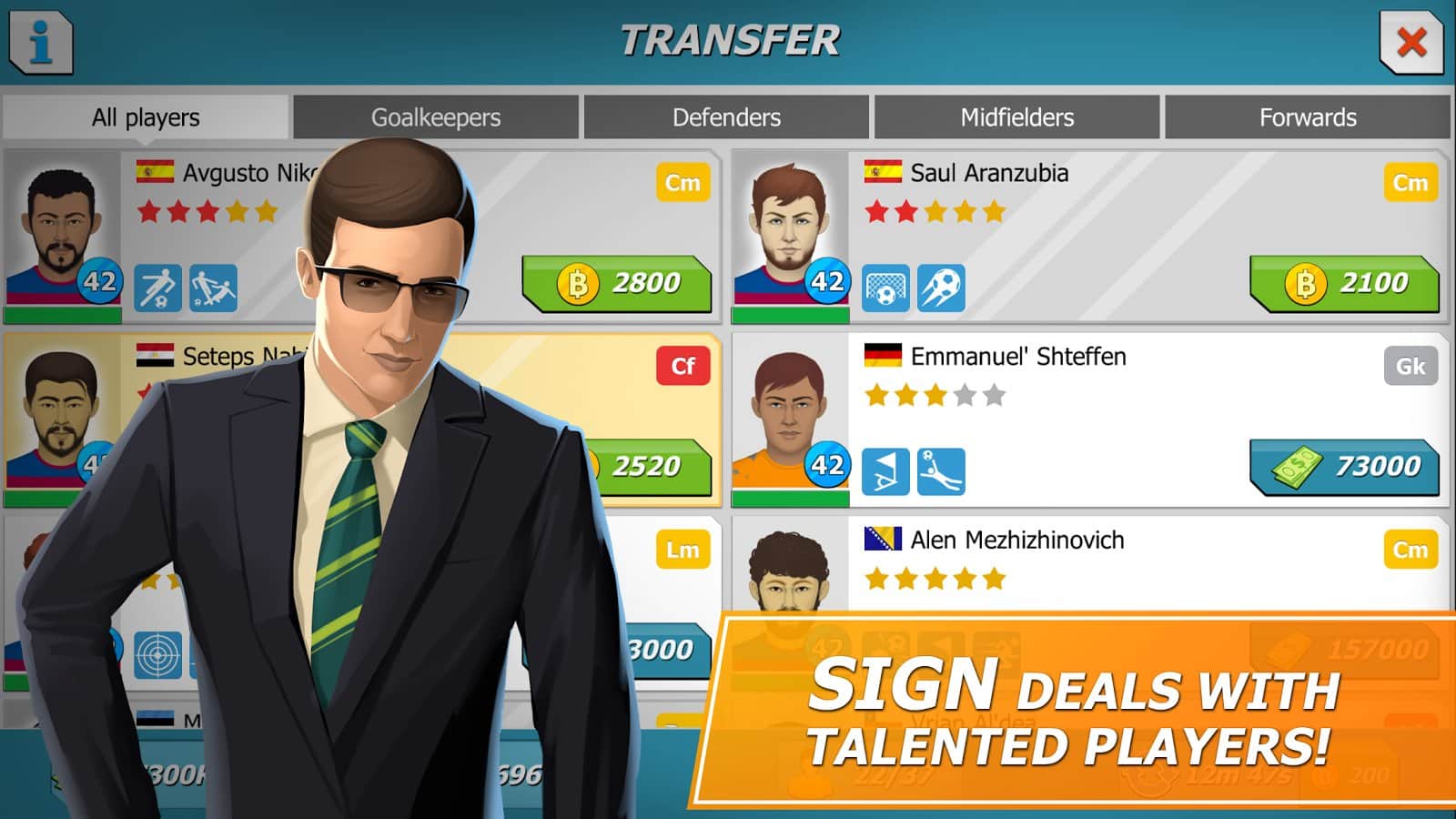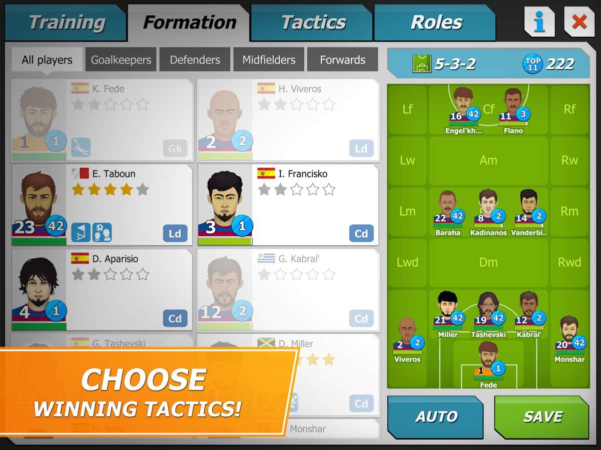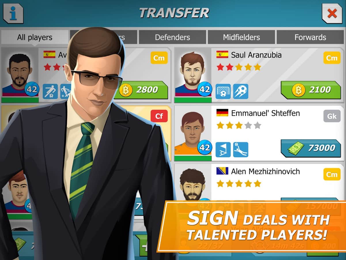 11x11: El gerente de fútbol es un juego deportivo, donde tomarás el mando del club de fútbol. En este juego te convertirás en el entrenador de tu club de fútbol, que debe llevar a la victoria en el campeonato principal. Elige tu equipo, una forma de fútbol única y sácala al campo, participando en partidos amistosos. Construye para tu equipo una base de entrenamiento, un enorme estadio y un hotel. Desarrolla tu plan y tácticas de juego y gana partidos, subiendo más alto en la clasificación. Enriquece tu equipo con nuevos jugadores que tendrán nuevas habilidades. Observa los partidos actuales y reemplaza jugadores.