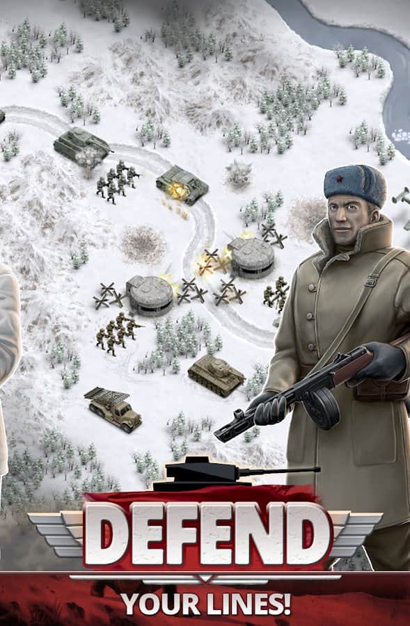 1941 Frente Helado - estrategia militar para Android de la más alta calidad. El juego definitivamente merece atención. Así que, ante ustedes, los eventos que se desarrollan de la Segunda Guerra Mundial. Paisajes invernales y duras escenas de la guerra en invierno.