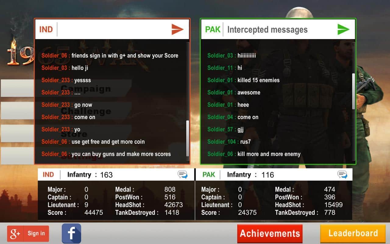 GUERRA DE 1965: Alerta de choque Indo-Pak - tirador en la guerra contra India y Pakistán. La historia tiene lugar en 1965. Juega como soldado lidiando con diferentes tipos de armas, rifles, pistolas y lo más importante, rifles de francotirador, todos disponibles para el jugador. El juego es un tirador en tercera persona en el que debes sobrevivir a toda costa y luchar valientemente contra las fuerzas enemigas. El juego tiene varios modos de juego, incluyendo la interesante "campaña". Cada día puedes recibir ciertos tipos de recompensas, así que tiene sentido entrar más a menudo en el juego.