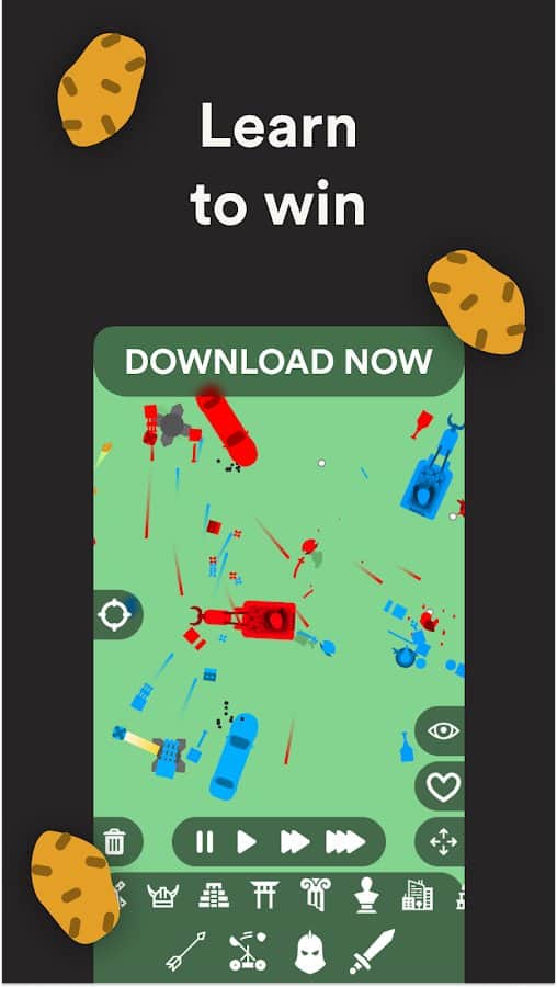 Simulador de Batallas 2D - pasa por los niveles con la colocación correcta de unidades que llevarán a cabo batallas dinámicas durante el juego, y solo tendrás que observar resultados significativos. Experimenta con combinaciones y considera además las reglas de los modos en los que estás: sandbox, campaña o zombie. Dentro de algunas de las pestañas de las facciones encontrarás muchas cosas interesantes, ¡comienza ahora mismo!