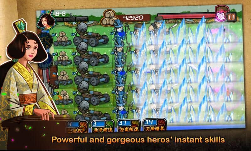3 Reinos TD: El Credo de los Defensores - ¡otro juego de estilo Tower Defense que definitivamente merece la pena! El juego recuerda mucho a Plants Vs Zombies - ¡así que nuestros cerebros desarrollan pasos estratégicos y ganan! Pero tengo que trabajar, y luego, como dicen, ¡hay que sacar la crema! Hablamos de las guerras en China durante el período de los tres reinos - defiendes tu posición enviando unidades hacia adelante y así protegiendo la torre. Si el enemigo rompe tus defensas - casi pierdes, pero aún está el personaje principal, que observa la batalla y si huele a bacon, entonces puedes aplicar sus habilidades especiales y de una manera increíble rectificar la situación. A medida que avanzas, ganarás experiencia y habilidades, habrá nuevos tipos de soldados y protección.