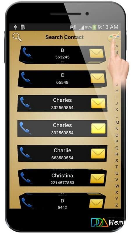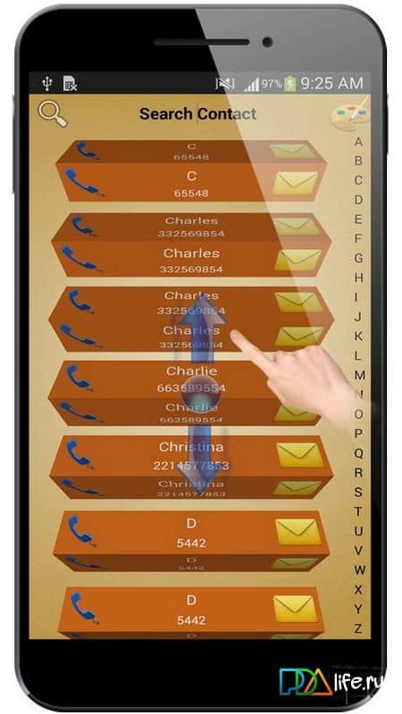 Lista de contactos en 3D - si estás cansado de la vista monótona de tus contactos, entonces este programa te ayudará a cambiarlos. Crea tu propio estilo de contactos que ahora tendrá efecto 3D. Cambia los colores y crea tu propio estilo único para tus contactos. También puedes editar, modificar, crear y eliminar contactos. La aplicación tiene un tamaño compacto y está bien optimizada para un desplazamiento más suave a través de toda la lista.