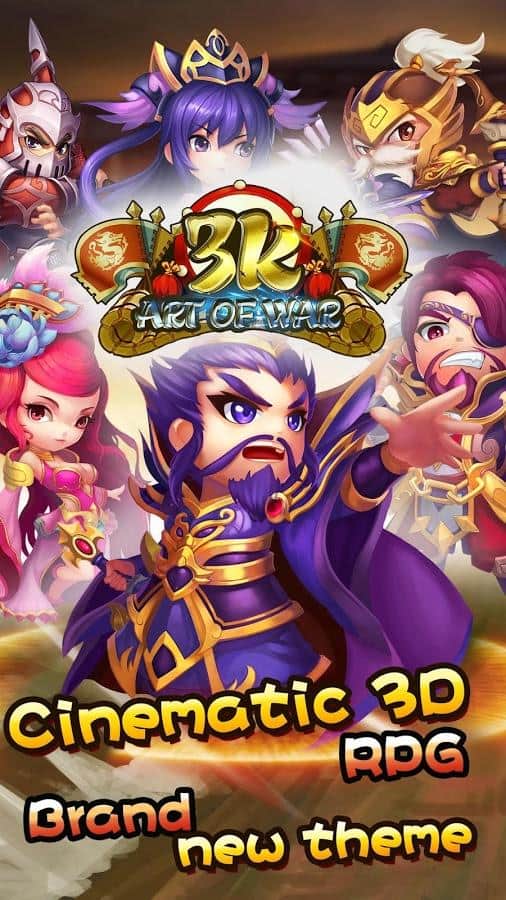 3K: Arte de la guerra, la historia se desarrolla en torno a los Tres Reinos. En este RPG tendrás batallas increíbles y una emocionante experiencia de combate. Podrás jugar con él durante mucho tiempo. Juega, gana y gana trofeos por buenas peleas. Además de las devastadoras batallas, puedes divertirte un poco con la moda. Viste a tu personaje con un atuendo interesante y un arsenal mortal de armas y resiste la impresión.