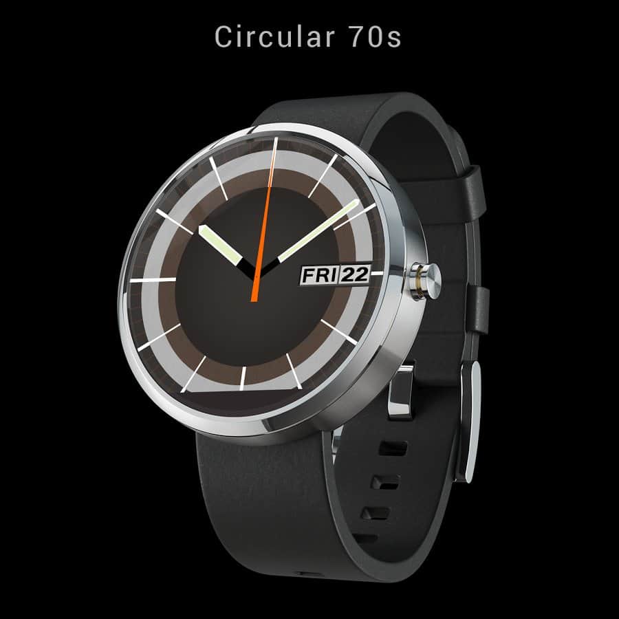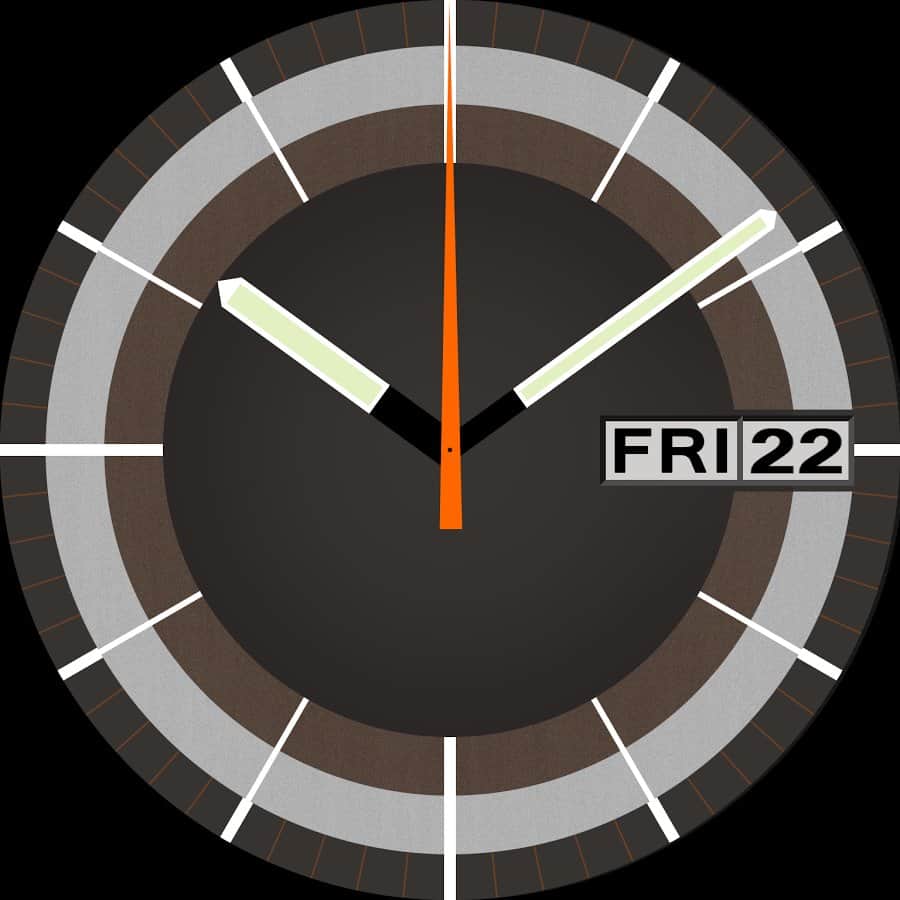 Para darle a su reloj en Android Wear un poco de encanto de los años setenta, este atractivo dial, ejecutado en colores apagados y diseño minimalista, puede ayudar. Se adapta igualmente bien a pantallas redondas, cuadradas y rectangulares, y debo admitir que se ve bien. Además de la hora actual, en la pantalla del reloj se mostrará la fecha actual en el reloj con pantalla redonda, e incluso el día de la semana. Si le preocupa el nivel de carga de su reloj, tenga en cuenta que este dial proporciona un modo de ahorro de energía en blanco y negro.