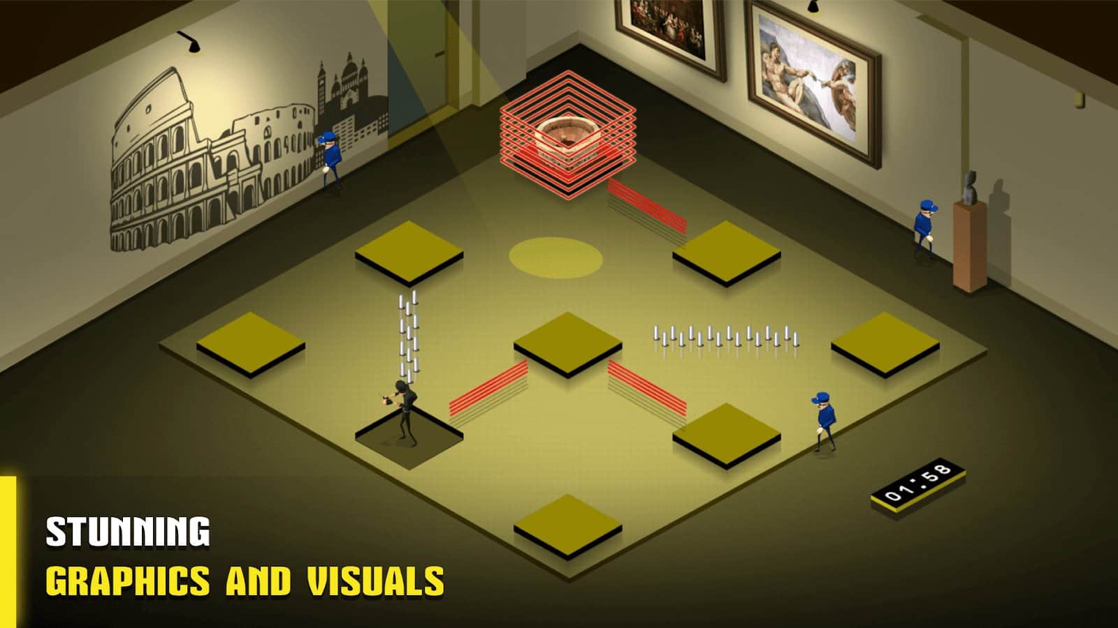 El Viaje de un Ladrón – un juego fascinante, donde controlas a un ladrón. En este juego tomarás el control del ladrón que necesita pasar por las salas del museo, en cada una de las cuales tienes que cometer un robo. Muévete a través de los azulejos y completa los niveles a tiempo. Intenta no enfrentarte a los guardias y no moverte en el mismo azulejo dos veces. Confía en tu lógica y piensa detenidamente cada uno de tus movimientos. En el juego encontrarás más de 70 niveles, una amplia variedad de habitaciones y misiones. Con cada nuevo nivel, la complejidad del juego aumentará y tendrás que esforzarte para superarlos todos.