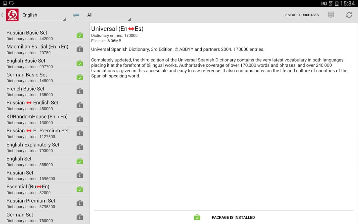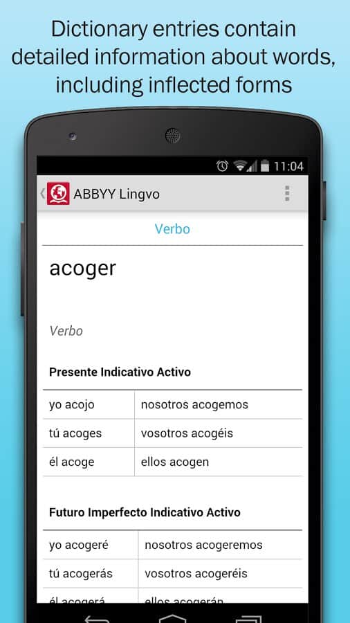 el diccionario traductor famoso en el mundo de ABBYY ahora en Android.