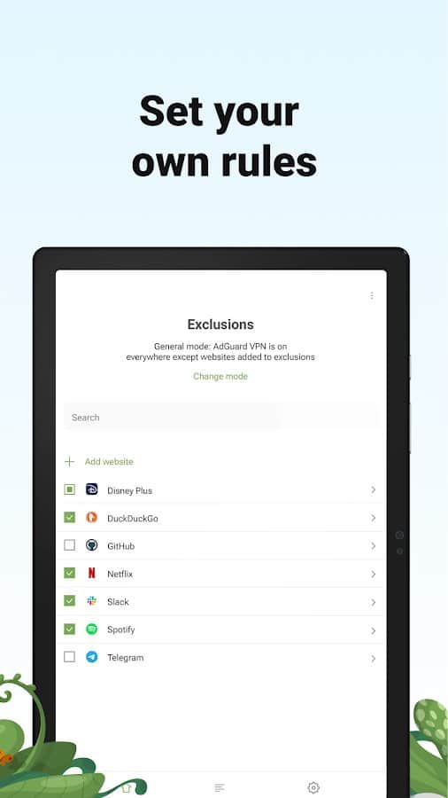 ¡AdGuard VPN — un proxy privado para proteger tu privacidad y libertad en Internet! AdGuard VPN oculta de manera confiable tu dirección IP y ubicación, encripta tu tráfico de Internet y asegura tu anonimato. Personaliza la configuración del VPN a tu preferencia: excluye sitios específicos o incluye solo aquellos que necesites. Con más de 50 servidores en todo el mundo, desde América del Norte hasta Australia, ¡elige dónde quieres estar virtualmente! Usa AdGuard VPN simultáneamente en todos tus dispositivos: computadoras, teléfonos inteligentes y tabletas.