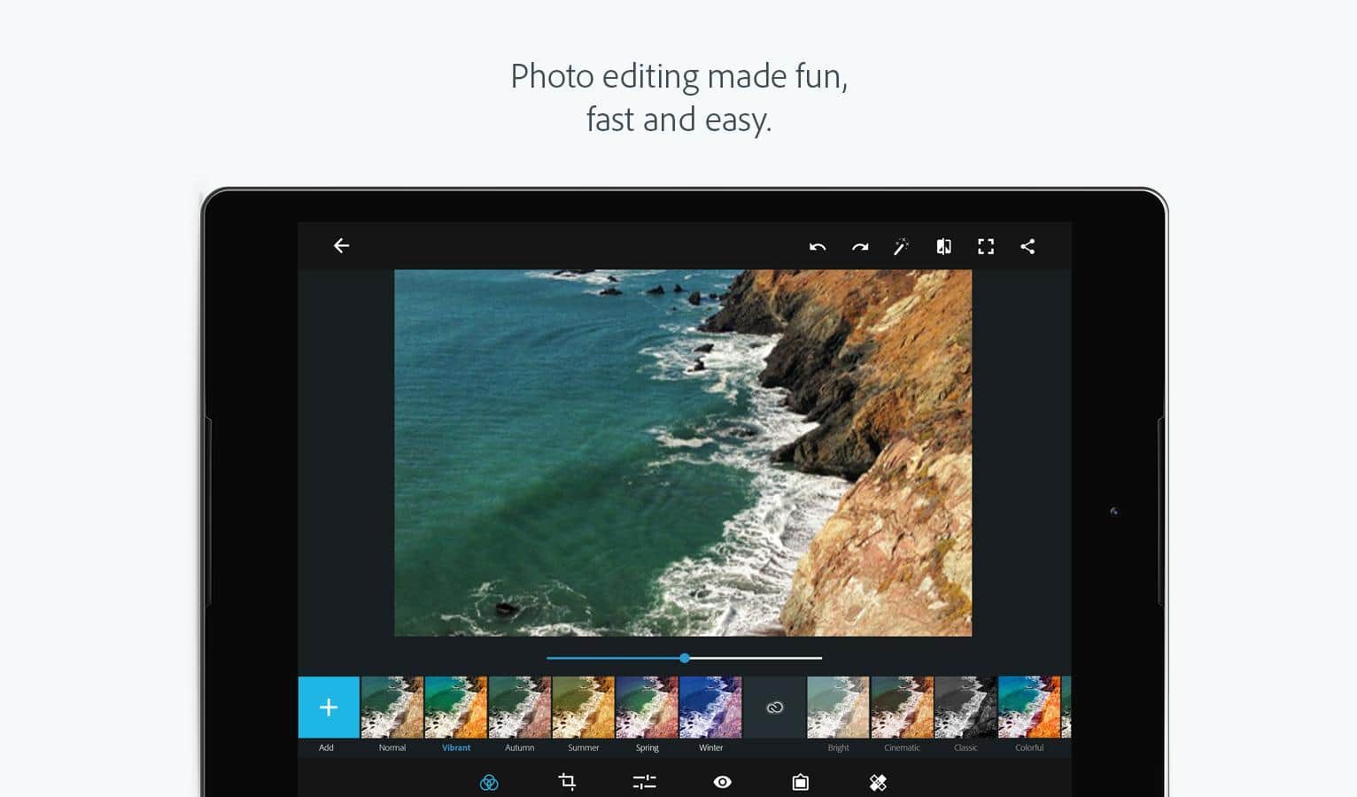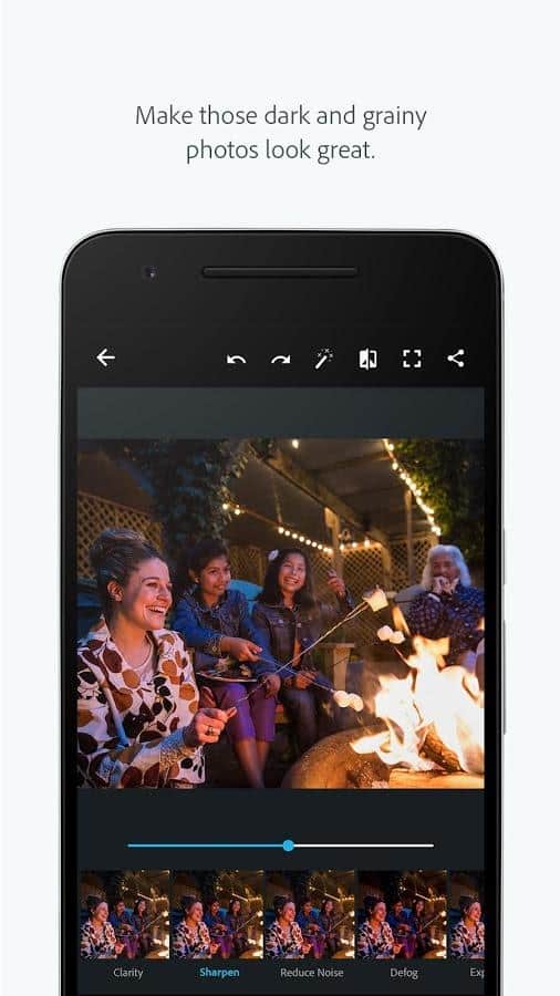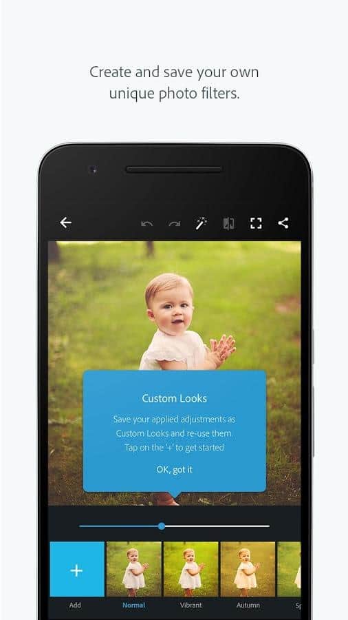 Adobe Photoshop Express - Editor de fotos adecuado para usuarios con experiencia mínima en fotos. Esta aplicación es simple e intuitiva, contiene muchos filtros y configuraciones diferentes para ayudarte a crear una obra maestra a partir de fotos ordinarias. Si no entiendes del todo las complejidades de trabajar con fotos, puedes configurar la opción automática, y luego la aplicación hará todo por ti, solo necesitarás elegir un filtro que te guste.