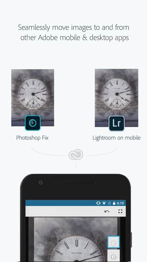 Esta aplicación es el siguiente paso de Adobe para conquistar el mercado móvil. La competencia aquí es seria, pero ¿cómo superar un producto de un monstruo así? Entonces, la aplicación es capaz de editar la imagen (ajustar brillo, contraste, ampliar parte de la imagen, recortar, eliminar detalles extra de la imagen o aplicar filtros predefinidos), combinar múltiples imágenes y más. Pero la característica principal del programa es diferente: gracias a la integración con el Photoshop completo, puedes comenzar a editar en un smartphone y continuar en la computadora. Hay un fuerte elemento social: puedes compartir aplicaciones en redes sociales o mostrarlas a profesionales y obtener sus consejos.