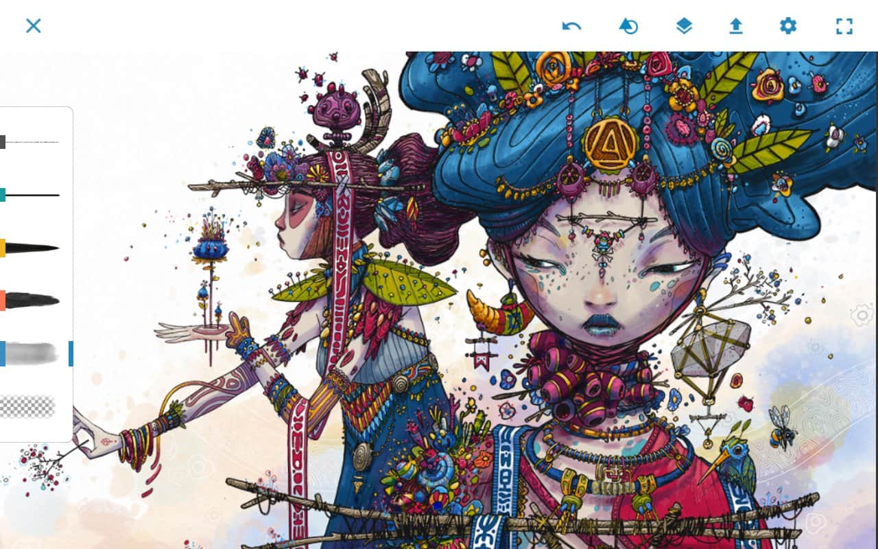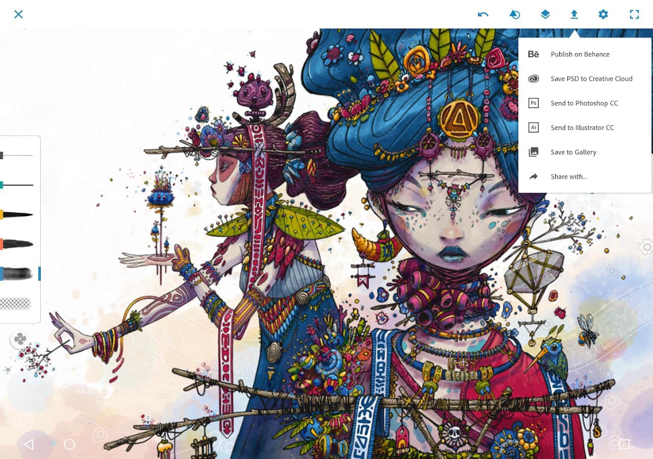 Para aquellos que no están familiarizados con Adobe Photoshop Sketch, cabe destacar que este programa permite crear bocetos con diversas herramientas, lápices, pinceles y otras cosas, y luego enviar el trabajo a Adobe Photoshop CC o Adobe Illustrator CC utilizando capas.