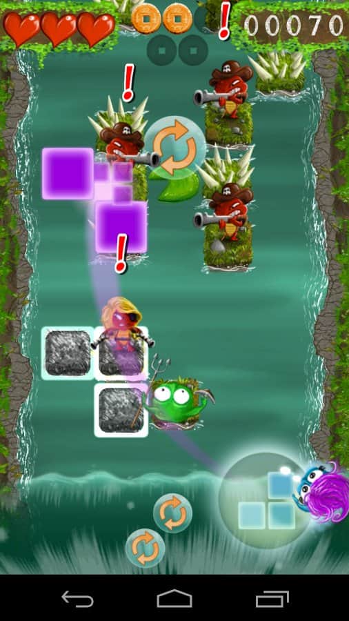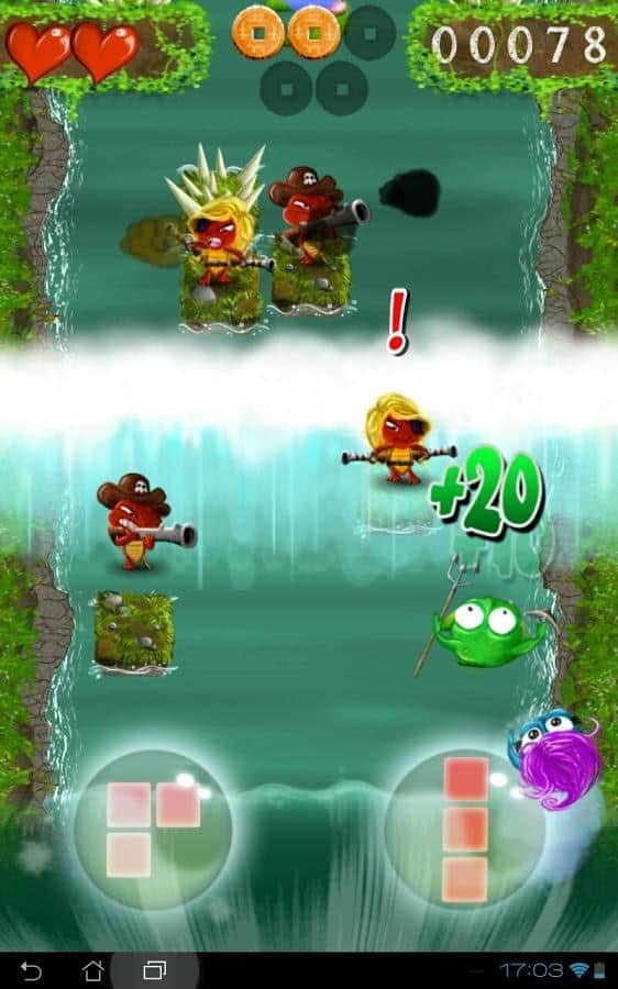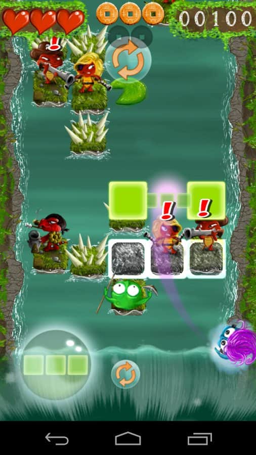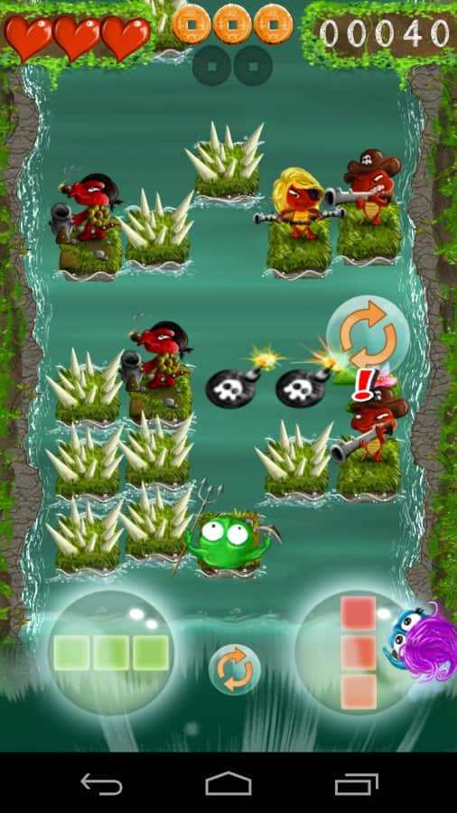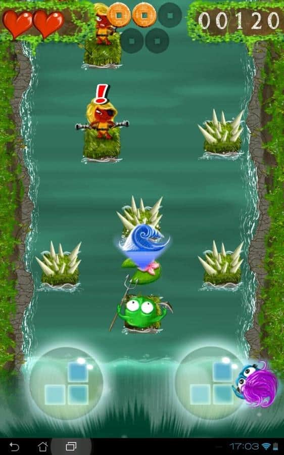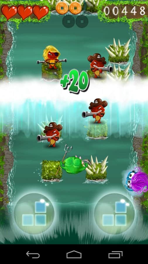 Tetris es uno de los juegos de arcade más populares y famosos, y a pesar de que el juego salió hace más de dos décadas, aún disfruta de popularidad. Para estándares de juego tan impresionantes, la compañía basada en Tetris ha lanzado una enorme cantidad de contrapartes, clones y alteraciones. Y recientemente, en relación con la moda por los juegos retro, los desarrolladores han comenzado a prestar más atención a los arcades clásicos y los juegos de plataformas. Adventrix - juego de puzzle arcade basado en la mecánica del juego de Tetris. Tu tarea es colocar las figuras que caen para ayudar a la rana a cruzar de una orilla a la otra, mientras lucha periódicamente contra los piratas que la atacan. La característica del juego es que se te da la oportunidad de elegir las figuras que caen para superar los obstáculos de manera más eficiente.