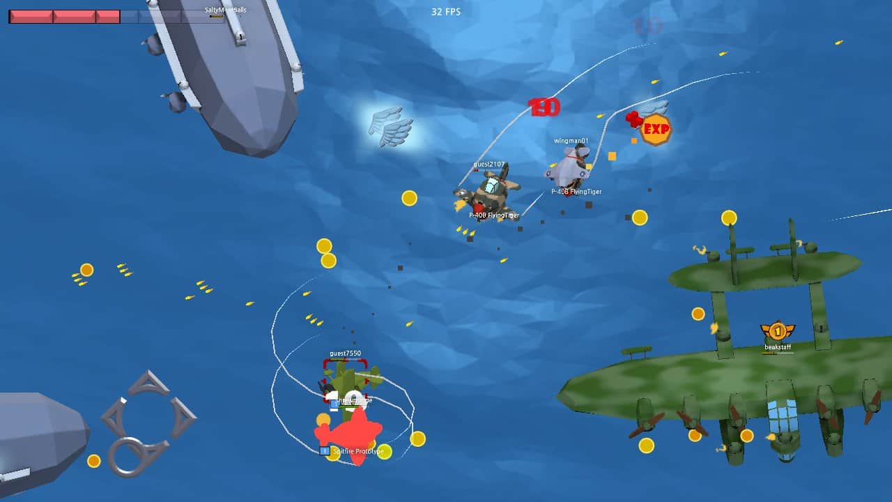 AeroBlaster – participa en dinámicas batallas aéreas, llevadas a cabo con los cazas de la Segunda Guerra Mundial. Toma el control de tu caza y salta al aire, involucrándote en batallas con múltiples oponentes. Realiza numerosas maniobras y trucos y conviértete en un verdadero AS en su campo. Dispara tus cañones y derriba tantos aviones enemigos como puedas. Establece tu puntuación más alta en este juego y obtén recompensas y premios valiosos. Desbloquea todos los aviones en el juego y mejora los que quieras.