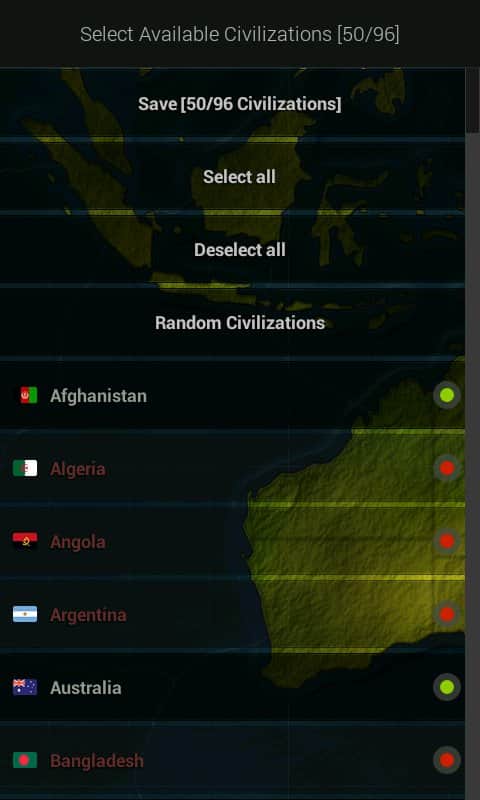 - El usuario puede elegir 'Civilización' en el modo 'Juego aleatorio'.