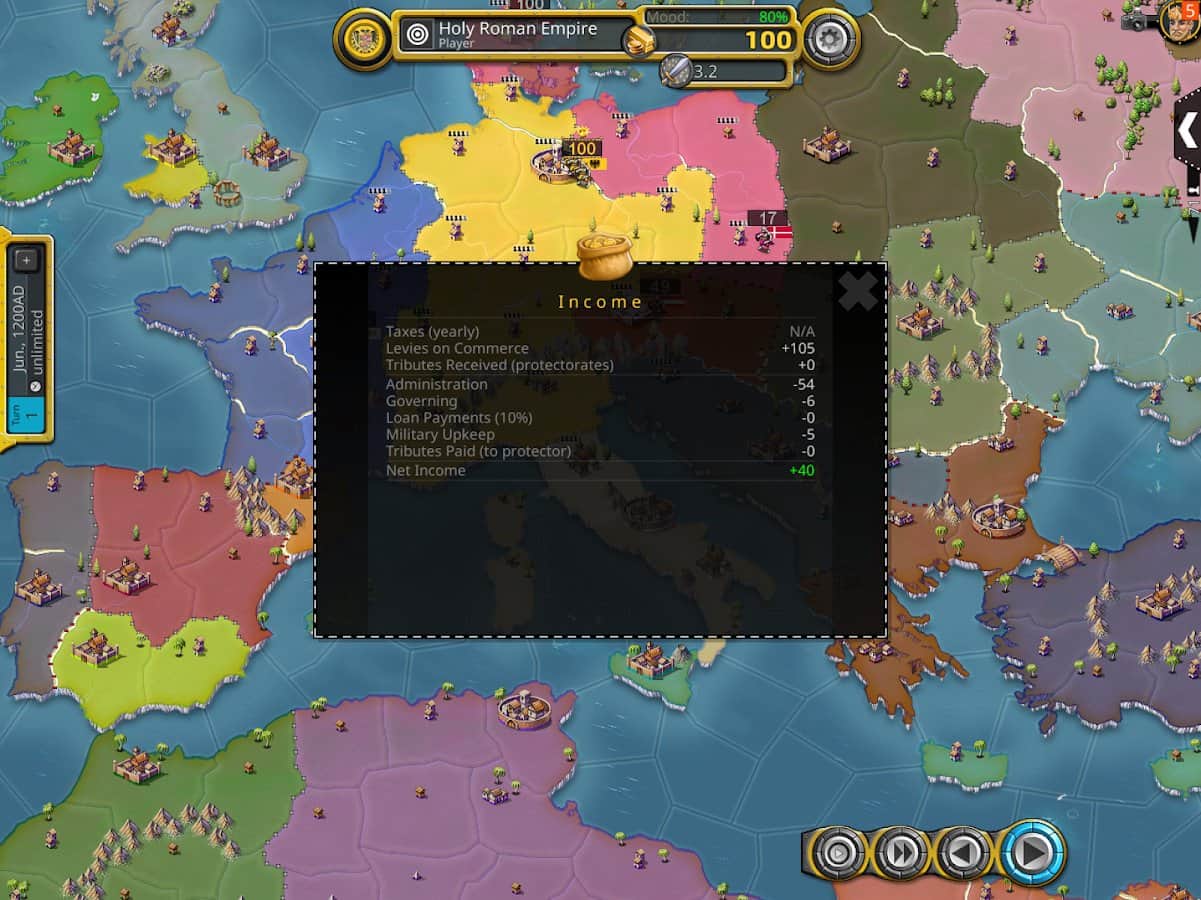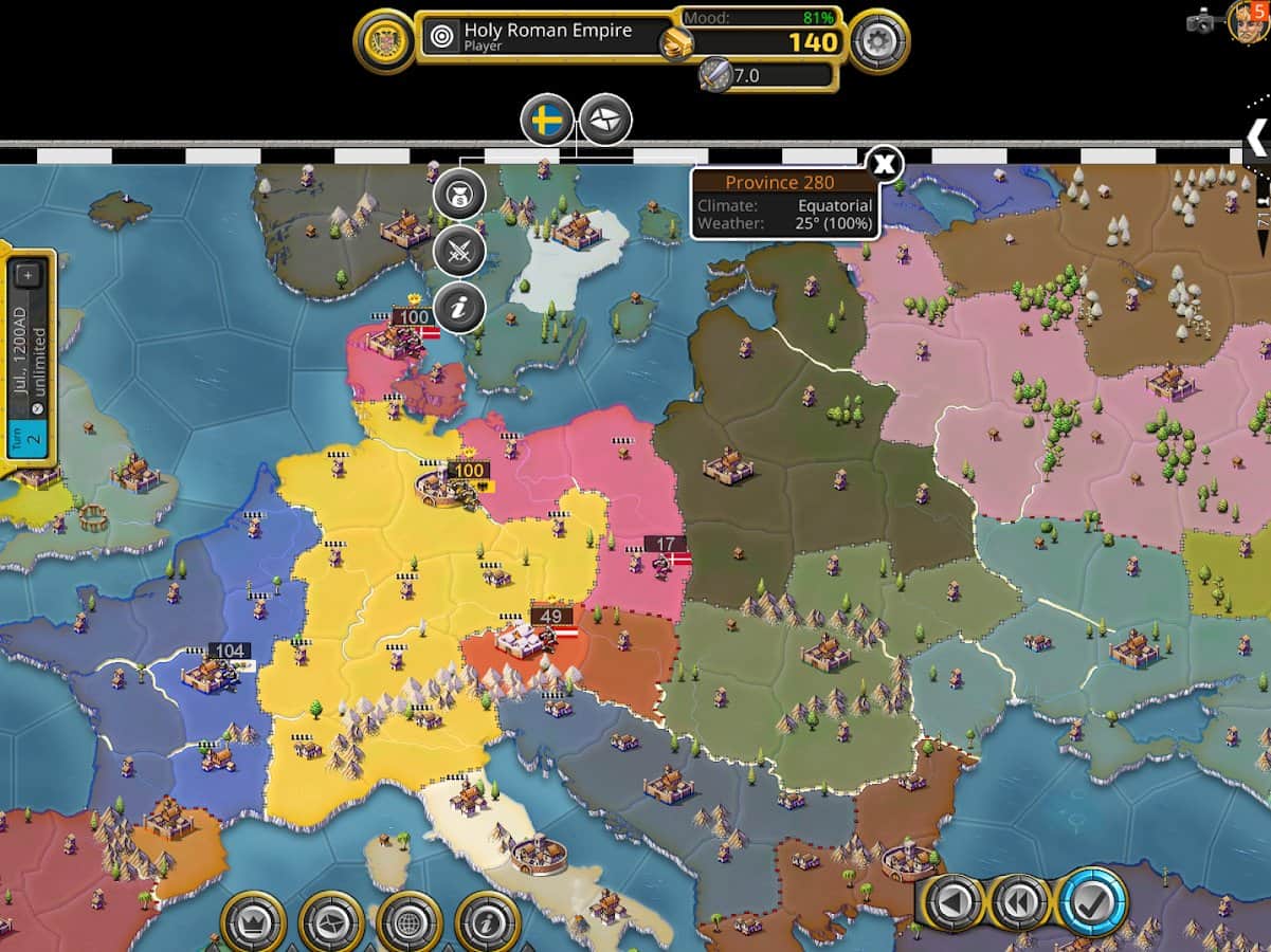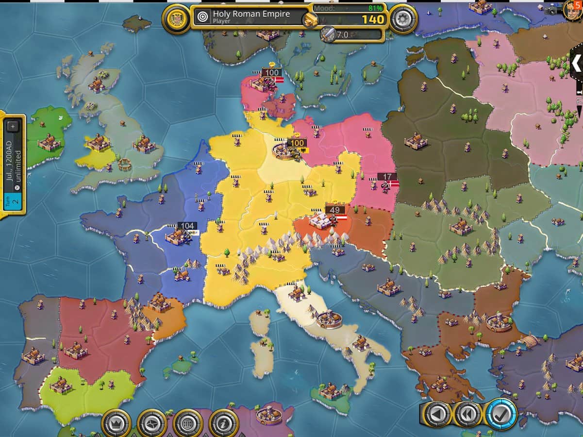 Age of Conquest IV - mecánicas clásicas de juego de estrategia por turnos que están hechas de acuerdo con todos los cánones del género. El juego tiene lugar en la época medieval. Puedes luchar por uno de los Estados disponibles, incluyendo el Imperio Romano, Francia, Rusia y China. Como ya se mencionó, Age of Conquest IV se basa en los cánones clásicos y describir la jugabilidad simplemente no tiene sentido. Sin embargo, vale la pena detenerse en las muchas posibilidades. El juego cuenta con una campaña en solitario completa en la que tú solo tienes que gestionar tu gobierno, luchando contra la IA. También hay un modo multijugador completo en el que podrás organizar una alianza con amigos y luchar contra la IA o contra otros jugadores.