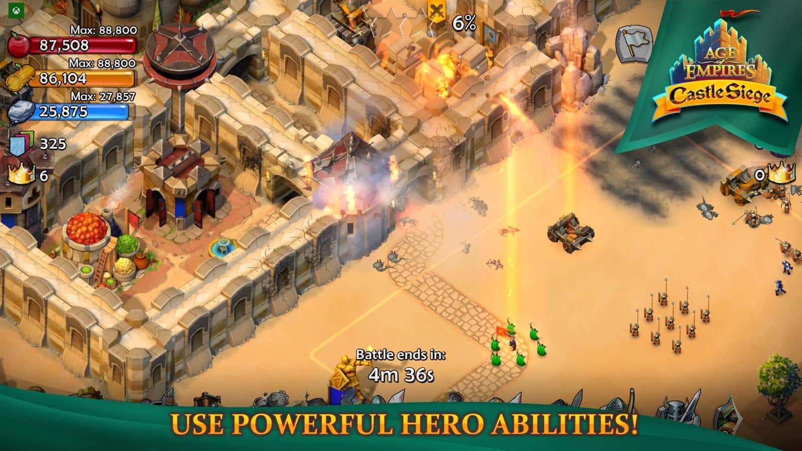 Age of Empires: Castle Siege es un gran juego de estrategia para Windows Phone donde te encontrarás en la Edad Media, y lucharás por tu Reino. Elige una de varias civilizaciones por las que luchar, tal vez los británicos, el estado teutónico y la Rus de Kiev. Fortifica tu castillo, construye un enorme ejército, atrayendo a tu lado a personajes tan famosos como Saladino, Ricardo Corazón de León y Juana de Arco. Tan pronto como reúnas un gran ejército y lo equipes con armas, ataca a un estado vecino, aplasta sus defensas y reclama sus tierras para ti.