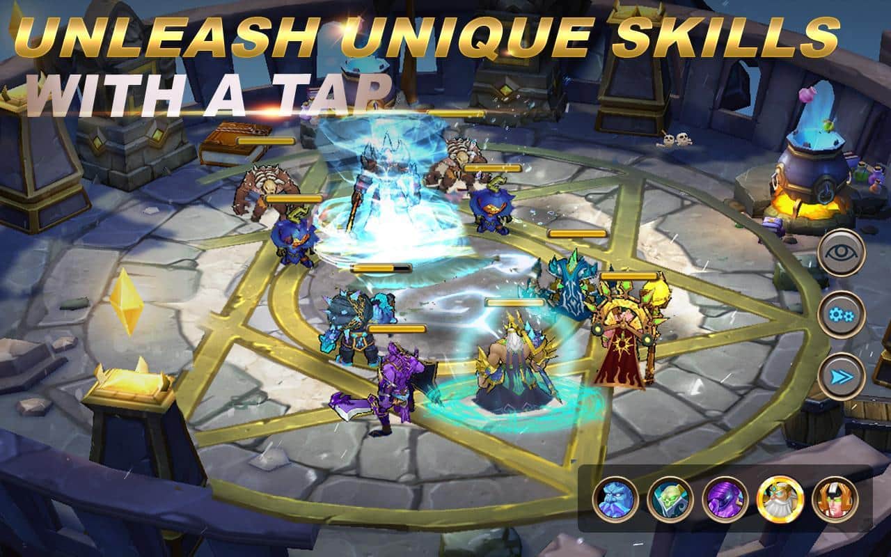 Edad de la Magia – crea tu escuadrón imbatible de héroes y desafía a las fuerzas del mal. En este juego, emprenderás un viaje inolvidable a través de ubicaciones únicas donde te encontrarás con poderosos enemigos y un sinfín de héroes. Cada personaje en este juego tiene habilidades únicas, úsalas en la batalla y destruye monstruos. Obtén valiosos trofeos después de cada batalla exitosa y mejora las habilidades de tus héroes. Únete a fuerzas con amigos para crear alianzas invencibles que te permitirán luchar contra jefes. Usa la magia para ataques devastadores y hechizos y desafía a los jugadores más fuertes de todo el mundo, luchando en la arena.