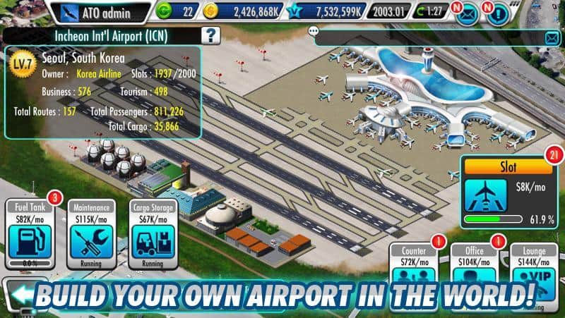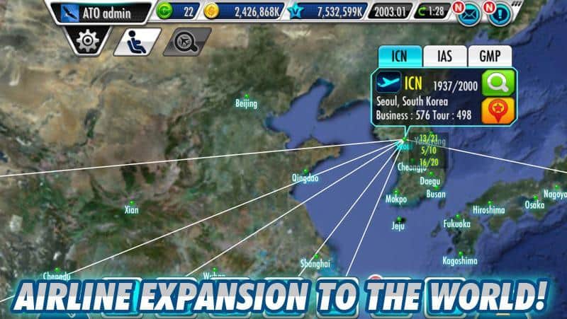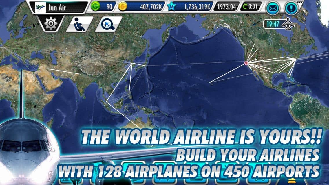 AirTycoon Online - Bienvenido a la atmósfera de una buena estrategia en Android en la que necesitarás construir y gestionar tu propia compañía aérea. Te espera un juego multijugador en línea a través de Internet para competir con personas de todo el mundo. En el juego, hay 128 modelos de aviones reales y alrededor de 450 aeropuertos en todo el mundo con la capacidad de comprar y vender aeronaves. Así que, ¿vas a gestionar no solo vuelos de pasajeros sino también transporte?