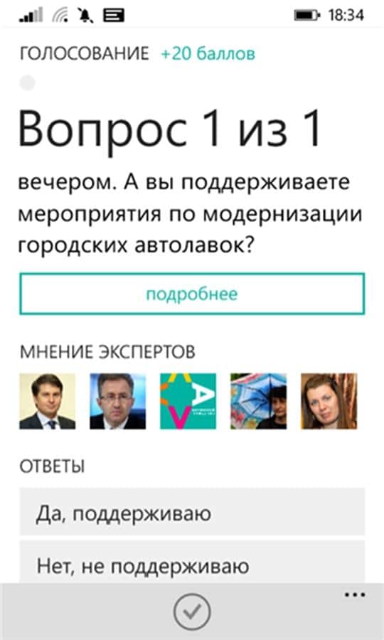 Ciudadano activo – el cliente oficial del servicio ahora también para Windows Phone 8. Aplicación para aquellos a quienes no les da igual lo que sucede en Moscú. Semanalmente, este servicio ofrece a los residentes de Moscú discutir cuestiones importantes para la ciudad y así tener la posibilidad de influir en las decisiones tomadas por las autoridades. Al participar en encuestas, obtienes puntos, que posteriormente podrás utilizar para adquirir no solo productos reales, sino también diferentes tipos de servicios. No seas indiferente a los problemas que afectan a todos y cada uno.