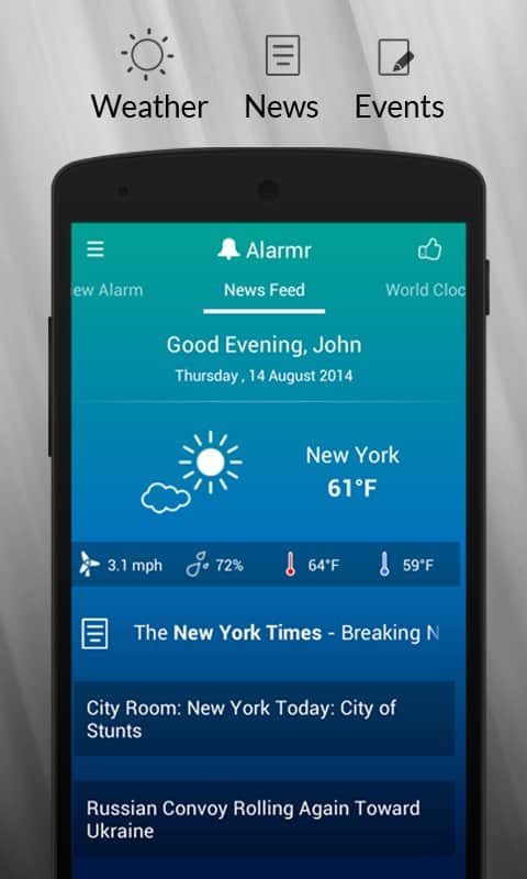 Alarmr: Despertador - esta aplicación será muy útil en tu vida cotidiana. El despertador es algo que acompaña a muchas personas y, por lo tanto, su elección debe tomarse con total responsabilidad. Porque "¡Buenos días!" comienza precisamente con él) La aplicación tiene un aspecto moderno y, al mismo tiempo, cuenta con un diseño minimalista. Además de su función principal, la aplicación puede mostrar el pronóstico del tiempo en tu ciudad, así que siempre estarás al tanto de las últimas noticias meteorológicas. Si te gusta dormir con tu música favorita, el "temporizador de sueño" te será de gran ayuda, ya que, al finalizar el tiempo especificado, la música se apagará.