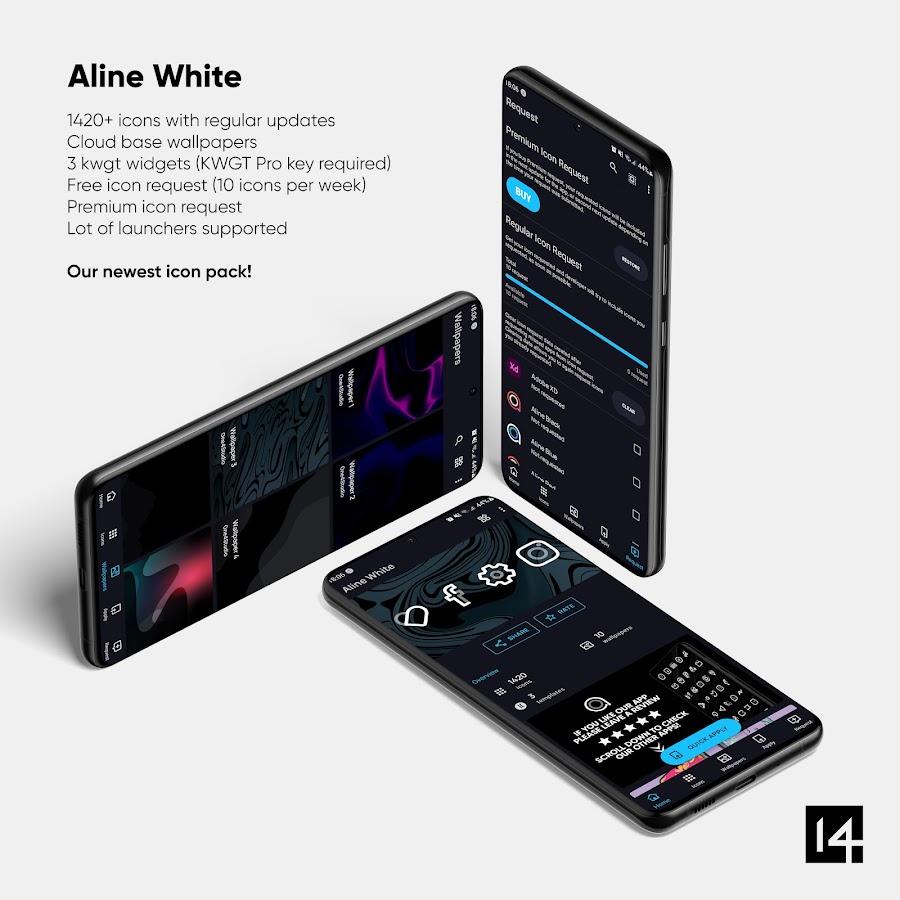 El paquete de iconos Aline White es parte de un proyecto que continúa mostrando el meticuloso trabajo del autor de la serie de aplicaciones de personalización Dash Collection. Los iconos están diseñados en un estilo minimalista: líneas blancas gruesas, formas redondeadas y sin fondos. Junto con una amplia variedad y una fácil instalación, crean una gran impresión para los entusiastas de esta categoría. Tradicionalmente, el paquete incluye widgets que requieren el conjunto completo de KWGT para funcionar, haciendo que el resultado sea aún más impresionante. A pesar de su simplicidad, el color blanco clásico y las formas tranquilas hacen que el resultado sea verdaderamente atractivo.