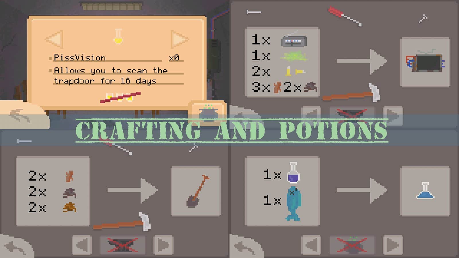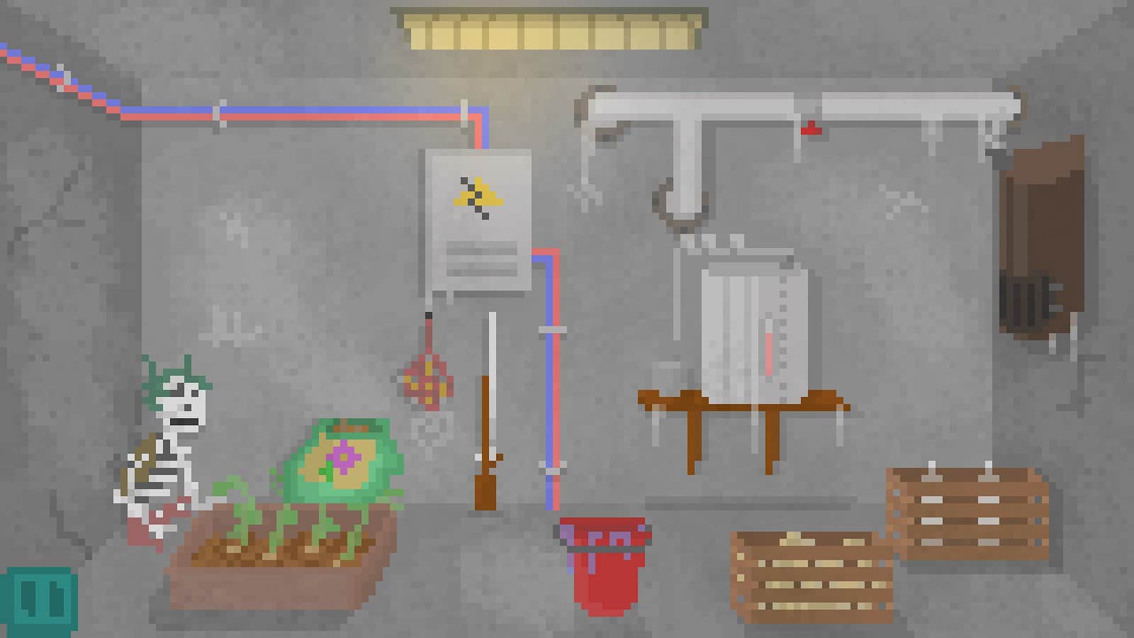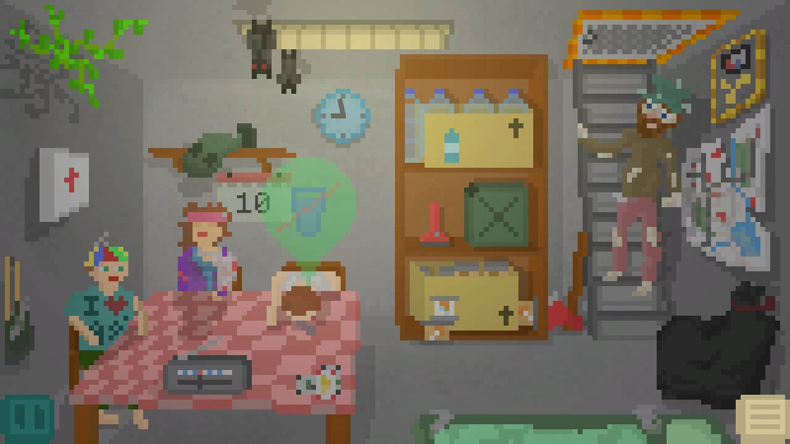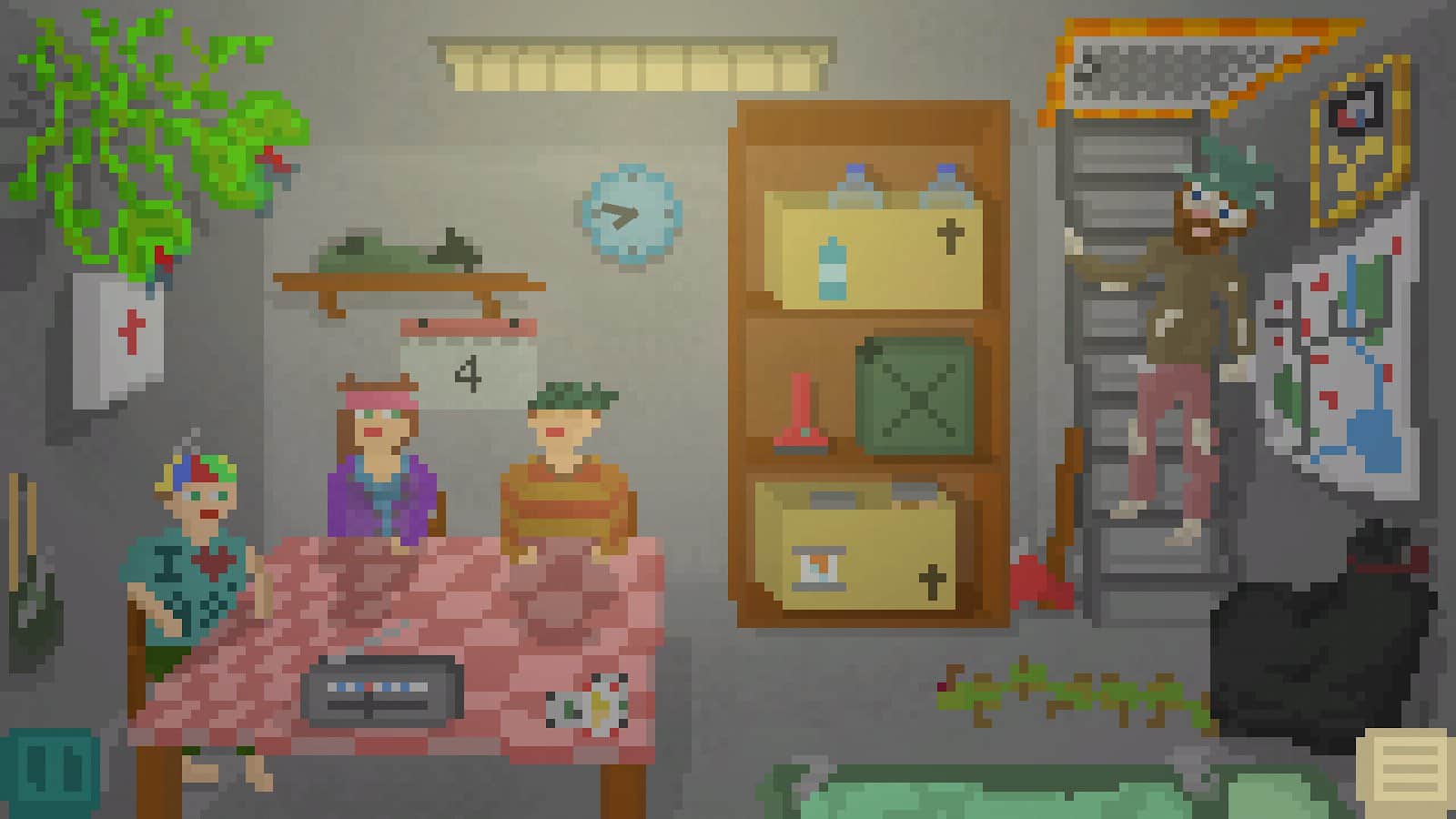 Alive In Shelter es un juego para Android, hecho en arte pixelado donde tienes que sobrevivir en un refugio después de una guerra nuclear. En este juego te encontrarás de repente con el Apocalipsis y necesitarás mostrar toda tu ingenio y excelente respuesta para llenar el contenedor de cosas necesarias y comida. Explora todas las habitaciones del refugio y resuelve los difíciles acertijos y rompecabezas que ofrece el juego. Usa tus reservas de comida sabiamente, busca recursos adicionales y crea los objetos necesarios. Cuida la salud de toda la familia y explora la superficie de la tierra y el desierto alrededor del refugio. Sigue todas las tareas y misiones del juego y resuelve los rompecabezas.