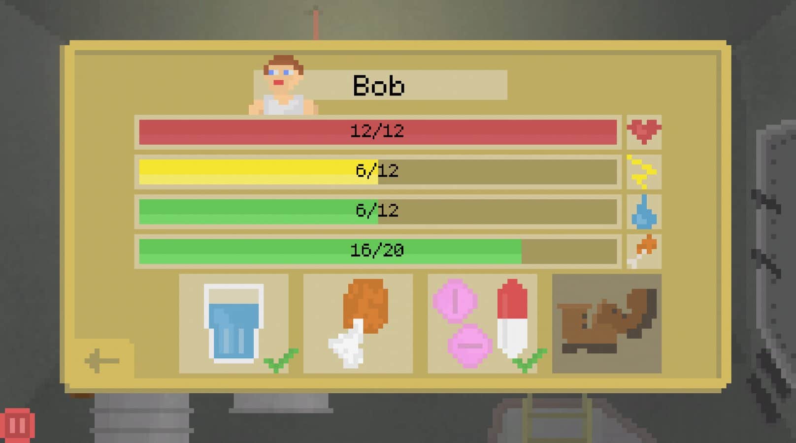 encuentras en un búnker con tres personajes, a los que necesitas ayudar a recolectar todo