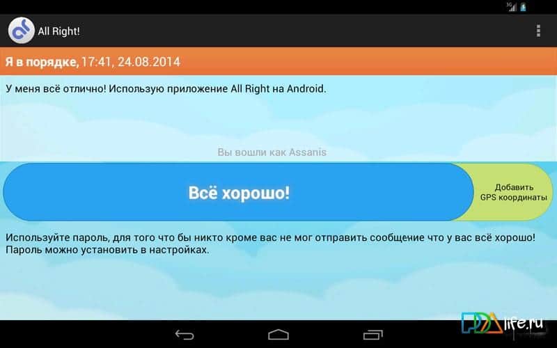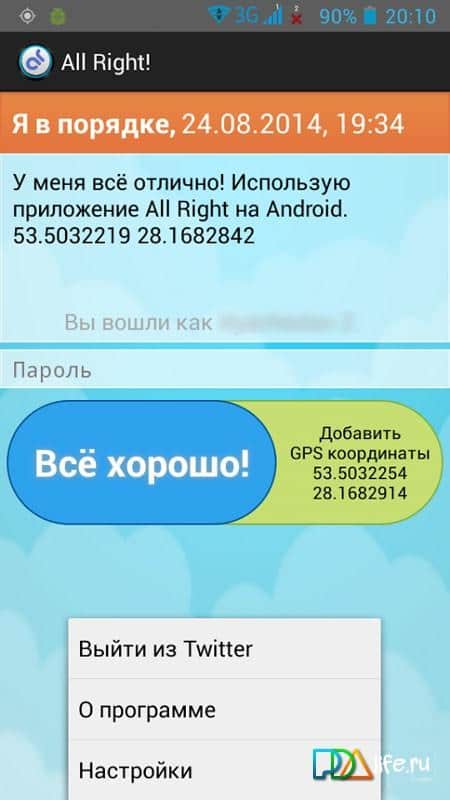 ¡Todo Bien! – una excelente aplicación para aquellos que viajan mucho y están lejos de casa. Sus seres queridos estarán tranquilos por usted si descarga e instala esta aplicación, gracias a la cual podrá informar que está bien. La aplicación ¡Todo Bien! será indispensable en caso de falta de Wi-Fi o de fondos en la cuenta del teléfono. Envíe mensajes sobre su bienestar y se publicarán en Twitter, también hay una opción para informar sobre sus coordenadas GPS.