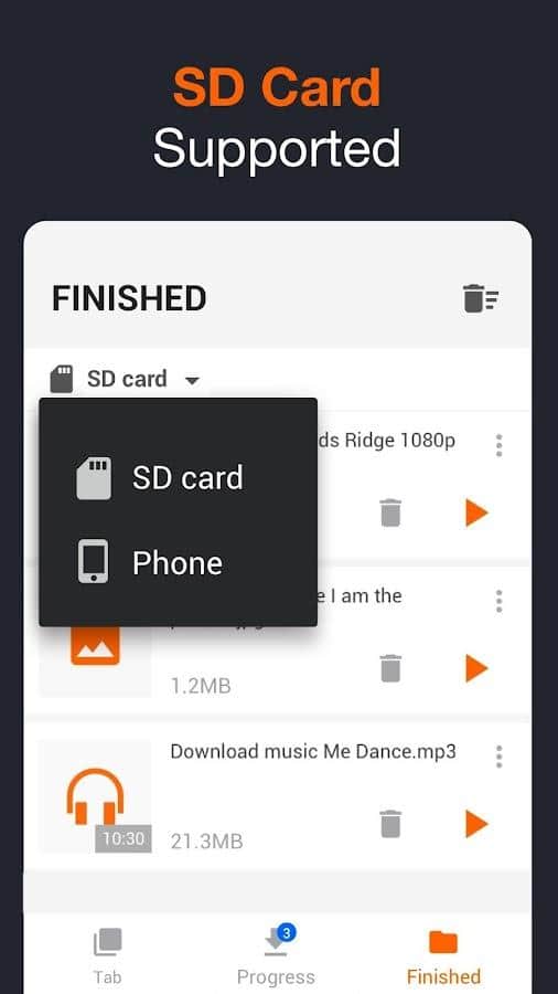 - Descarga en segundo plano y soporte para tarjeta SD.