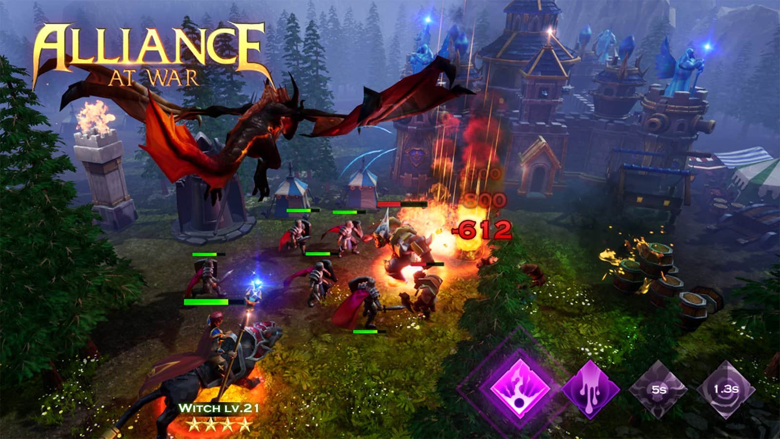 Alianza en Guerra: Imperio Dragón - Estrategia MMO es un juego de estrategia MMO multijugador en un hermoso y realista entorno medieval, con elementos de fantasía. En Alianza en Guerra, desbloqueas todas las posibilidades a medida que progresas. Puedes construir tu Imperio, explorar mundos y ubicaciones desconocidas, para convertirte en un participante de las batallas más ambiciosas y épicas por castillos, tronos y artefactos, y explorar todas las actividades de la Alianza. El héroe puede reclutar un escuadrón de personajes únicos: una Bruja, un Paladín, el Capitán del Oráculo. Cada uno de ellos tiene características clave que ayudarán en la batalla.