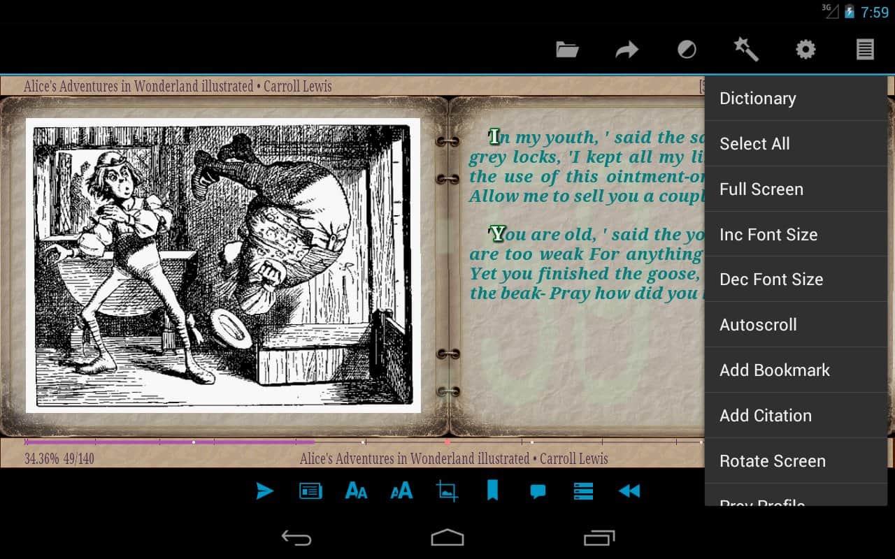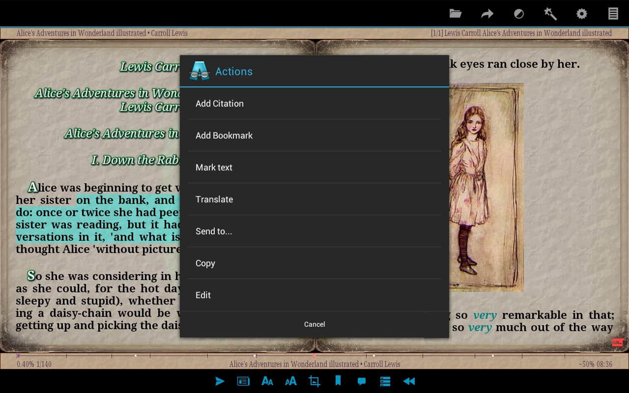 Se prevé la creación de marcadores, citas, y si es necesario, la posibilidad de resaltar texto. A algunos lectores les gustará la opción de conectar diccionarios.