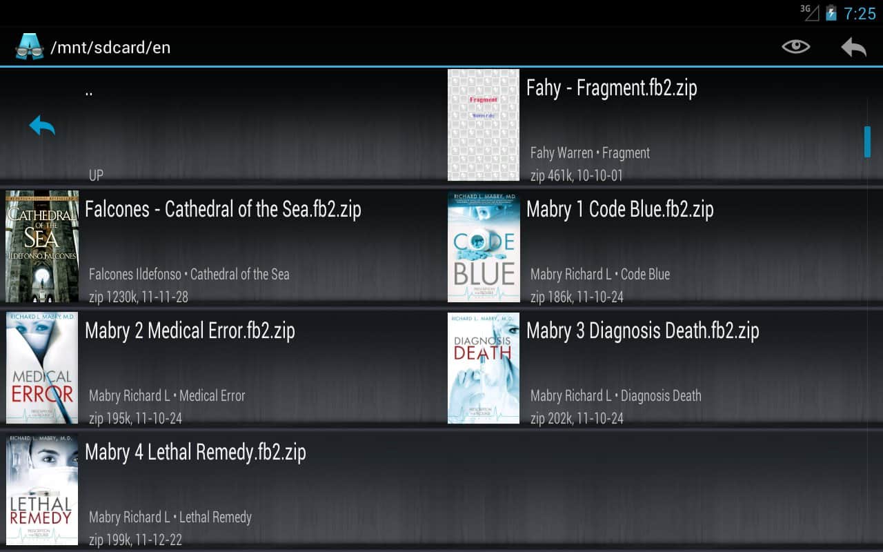 En algunos formatos se admite trabajar con contenido y enlaces, cada formato tiene una navegación conveniente, y si no deseas usar los botones, puedes utilizar gestos predefinidos (toques cortos y largos, deslizamientos). En la pantalla de inicio puedes colocar no solo el ícono de la aplicación, sino también accesos directos a libros individuales.