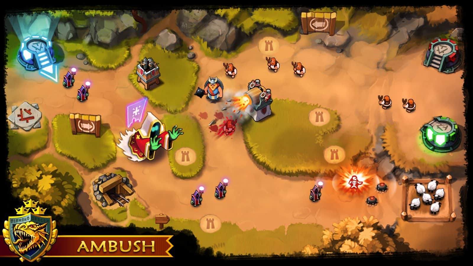 ¡Emboscada! - Ofensiva de Torres - juego, donde tienes que defender tu torre. Las antiguas tribus de los vikingos durante muchos años construyeron sus torres y dispositivos de defensa para protegerse de los enemigos. Finalmente, ha llegado la hora, tienes que defenderte de los ataques enemigos en tu territorio, sin permitir que los capturen. Se te ofrecerán 20 variedades de torres y 20 piezas diferentes de equipo, para disponer de ellas sabiamente y atravesar las defensas enemigas y romperlas.