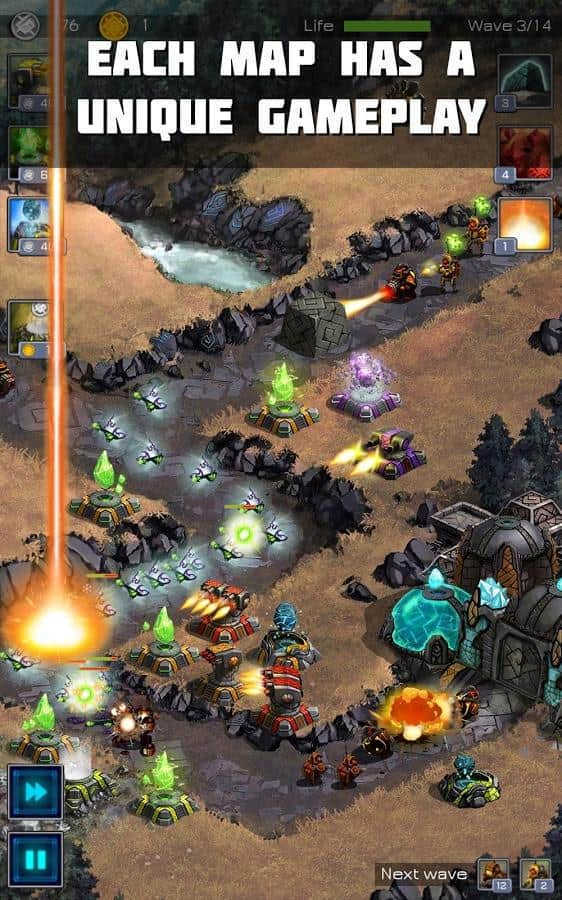 Últimamente, los desarrolladores de juegos móviles han comenzado a prestar más atención a los arcades, estrategias multijugador y rompecabezas en una serie de tres en raya. Pero los fanáticos de las estrategias y en particular de Tower Defense han quedado algo olvidados. Sin embargo, el estudio desarrollador AmayaKids, que por cierto crea la mayoría de sus proyectos para el público infantil, decidió complacer a los jugadores con una estrategia de calidad de las torres de defensa, el proyecto se llama Ancient Planet. La trama se desarrolla en un mundo antiguo, un mundo atacado por invasores alienígenas, ahora te enfrentarás al embate de una civilización agresiva. Toda la atmósfera y los gráficos de Ancient Planet tienen un estilo de escritura único. Una enorme selección de torres, docenas de tipos de enemigos, muchos niveles, todo esto sin duda deleitará a los fanáticos del género.
