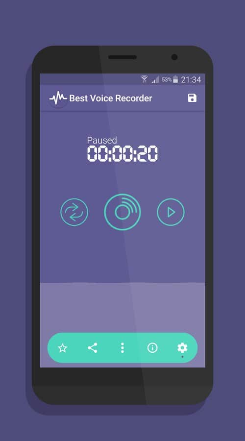 Crear una grabación de audio rápida con el Grabador de Voz de Android ahora no será un problema para ti. Graba conferencias, entrevistas, haz una lista de compras en modo audio, aprende inglés y descubre lo que es más importante para ti. Una interfaz agradable, funciones personalizables de las aplicaciones, la capacidad de guardar datos en la nube y compartir con amigos en redes sociales y WhatsApp le da al grabador una ventaja especial en su uso.