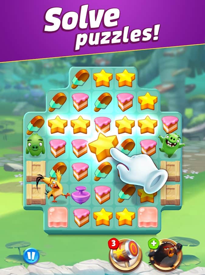 La serie de juegos del estudio Rovio se actualiza regularmente con nuevos proyectos, y los desarrolladores intentan complacernos con juegos en diferentes géneros mientras siguen usando nuestros personajes favoritos. En la serie de Angry Birds hemos visto juegos de la serie tres en fila y así los creadores del juego han lanzado un nuevo proyecto sobre temas similares. Angry Birds Match - el juego de arcade de tres en raya, la historia es muy simple, tus pájaros favoritos decidieron irse de vacaciones, pero los astutos cerdos sueñan con evitar que los pájaros se diviertan, y a su manera habitual aceptarán las intrigas. La mecánica del juego Angry Birds Match está hecha en el estilo habitual, por lo que todos los fanáticos de este género dominarán el juego fácilmente, pero para los fans de Angry Birds, Angry Birds Match será un digno complemento para la colección.