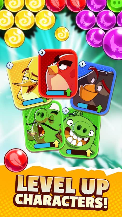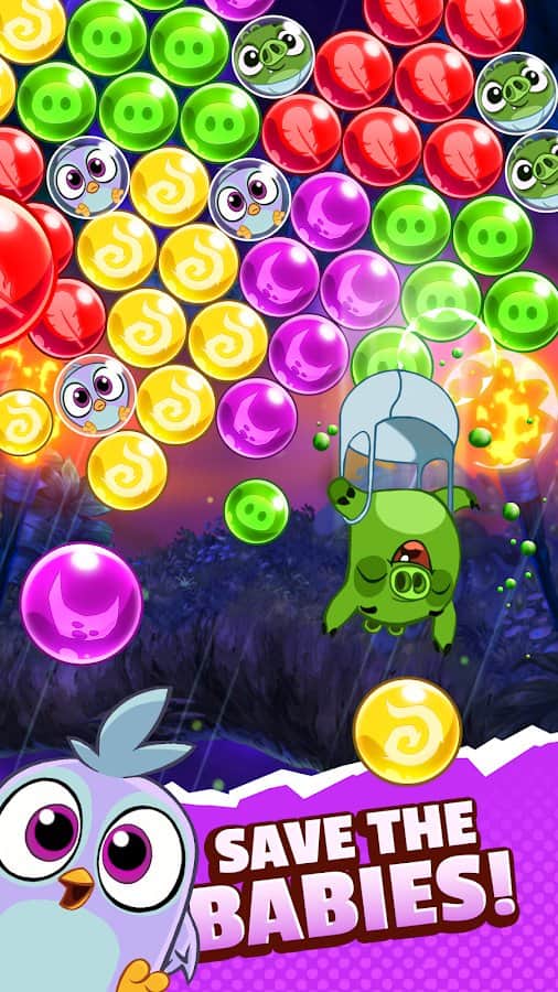 Angry Birds POP 2 – un juego en Android donde ayudarás a los pájaros y cerdos a salvar su mundo de los enemigos. En este juego, los dos bandos en guerra se unen en nombre de salvar a sus hijos de las burbujas. Un enorme grupo de burbujas ha atravesado los portal en el cielo e intenta aterrizar. Tu tarea es disparar burbujas de colores y crear el mismo grupo de ellas. Revienta las burbujas y libera a los pájaros y cerdos de su cautiverio. Utiliza diferentes bonificaciones y potenciadores, y usa las habilidades únicas de diferentes personajes.