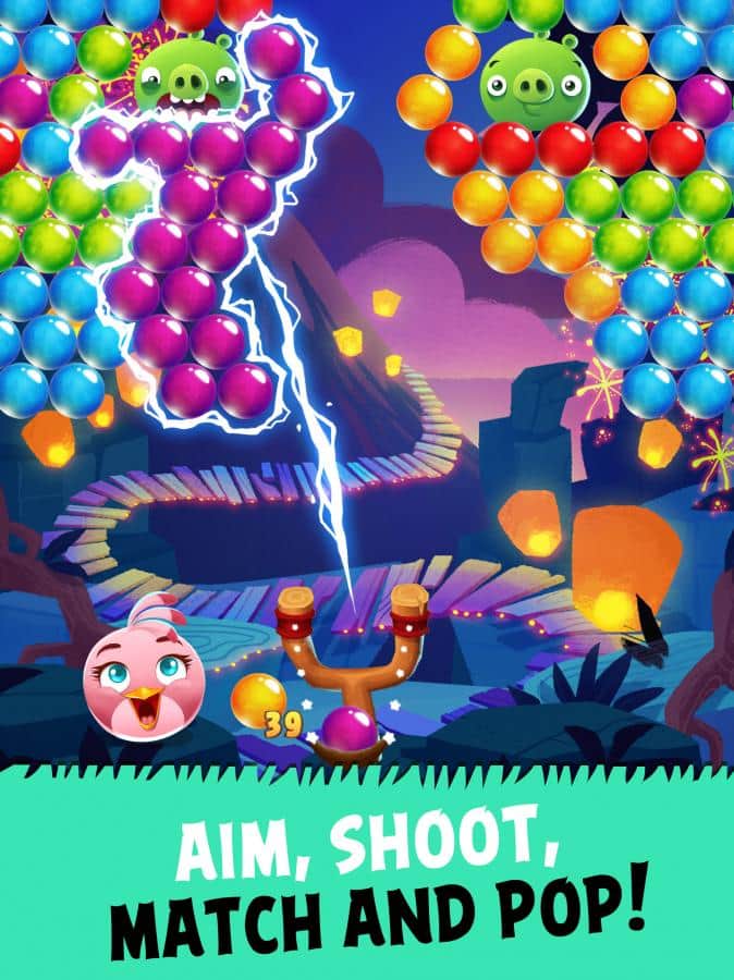 Angry Birds Stella POP! juego de puzzles en estilo arcade, que te contará una nueva e interesante historia sobre pájaros y cerdos. Este juego está hecho en la nueva versión donde tienes que disparar burbujas y estallarlas para derribar al cerdo y obtener la máxima puntuación. Ayuda a la protagonista Stella a derribar a todos los cerdos y liberar a todos los animales. Grandes bonificaciones en forma de finas burbujas que podrás acertar al objetivo seis veces seguidas y también recibir potenciadores para una explosión más rápida de burbujas. El juego te deleitará con una variedad de misiones al derribar cerdos, trabajar a tiempo y muchas más. Explora toda la isla y compite con tus amigos en puntería y velocidad.