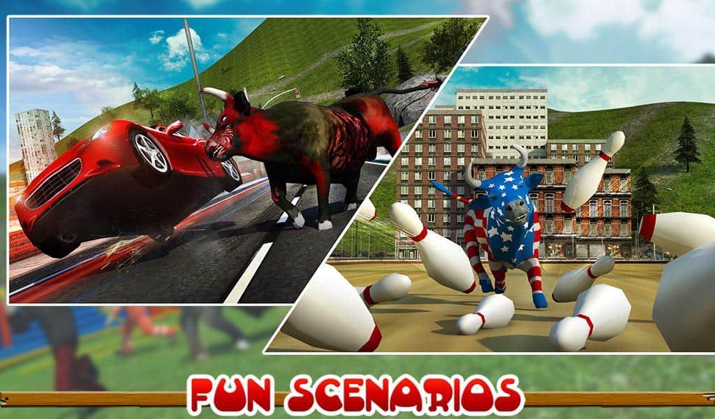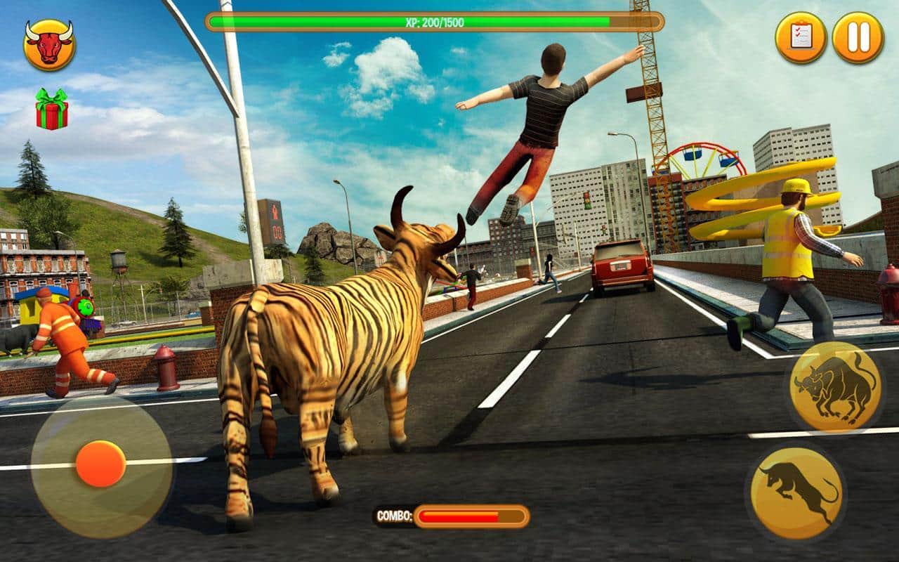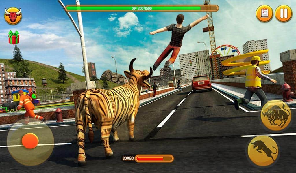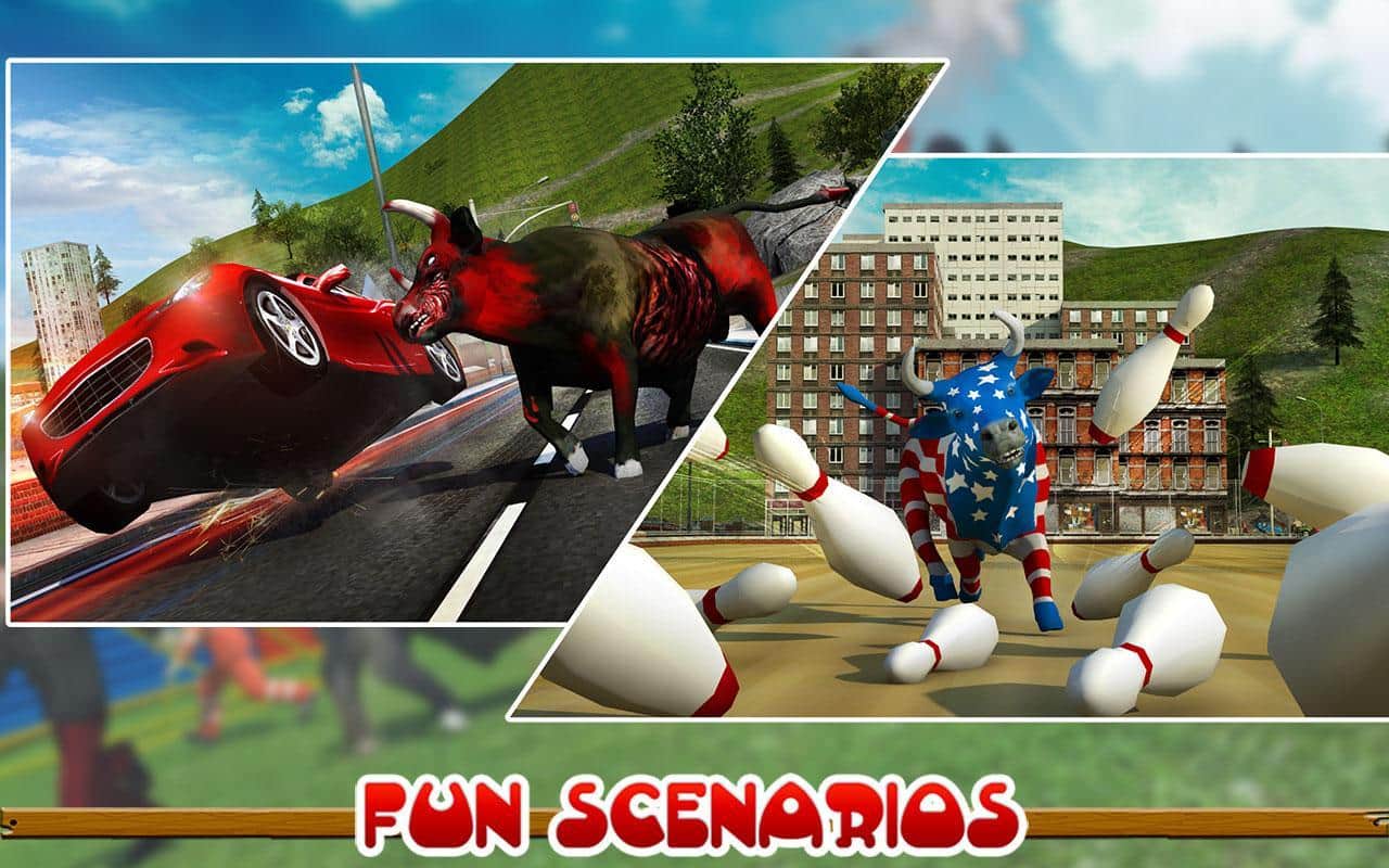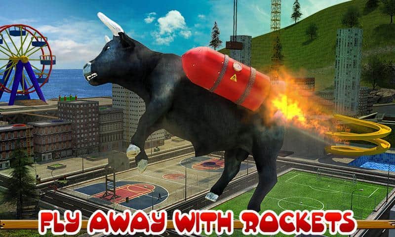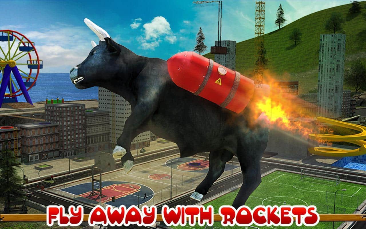 Toro Enfurecido 2017 – conduce un toro rabioso que corre por las calles y destruye todo a su paso. Guía al enorme toro y con cuernos y pezuñas inclina los coches, destruye edificios y otros obstáculos. En este juego podrás crear tu toro eligiendo una apariencia única. Lleva tu toro hacia adelante y navega su camino a través de todos los obstáculos. Acelera tu toro a alta velocidad embistiendo coches. Realiza saltos increíbles y usa un jetpack para volar sobre los obstáculos. Completa varias misiones y gana muchos bonos.