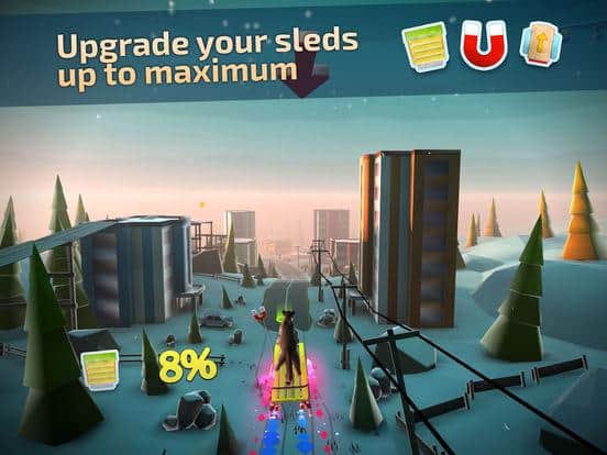 la Aventura Animal Aventura Descenso Acelerado – un juego adictivo para IOS donde controlas a un ciervo que está en trineo. Se acerca el invierno, así que es hora de agarrar los trineos y descender desde las cumbres de las montañas. Compite en un trineo a través de pueblos, aldeas, montañas cubiertas de nieve, ríos congelados y evita numerosos obstáculos en tu camino. En el camino, recoge potenciadores y mejoras y desbloquea nuevos trineos y animales como: zorro, conejo, lobo, y otros. Decora tu trineo y desbloquea nuevos niveles. Establece tu puntuación más alta en este juego y logra resultados increíbles.