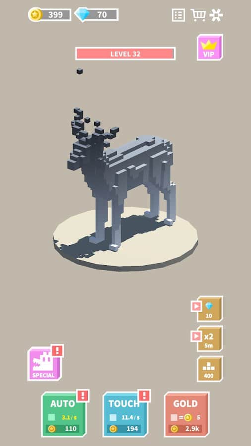 Animal Craft 3D: Reino Animal Idle - toca la pantalla y mira cómo crean un dinosaurio! Crea muchos animales diferentes: pandas, gatos, perros, ciervos, elefantes, liebres, águilas, gallinas, cisnes, serpientes, monos y dinosaurios. Colecciona monedas por cada nivel completado y eventualmente compra oportunidades adicionales para facilitar el proceso, lo que es posible construir algo o no hacer nada. El juego es perfecto tanto para niños como para adultos que han decidido recordar todos los animales del mundo y aprender nuevas palabras en inglés.