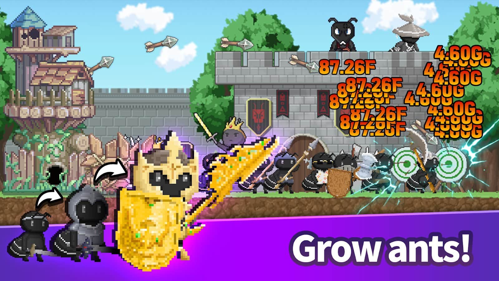 Castillo de Hormigas es un juego de Defensa de Torres con elementos de Idle, en el que los jugadores defienden el castillo de hormigas de monstruos. Los jugadores cultivan y mejoran hormigas, construyen y fortifican el castillo, contratan mercenarios y jefes para la defensa. Los jugadores pueden dejar el juego por un tiempo, y su castillo y hormigas seguirán desarrollándose.