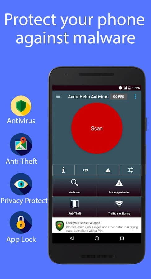 Antivirus Android. Uno de los mejores antivirus en dispositivos Android que soporta numerosas funciones. Protección constante en tiempo real de tu dispositivo. ¿Qué puedo decir de uno de los antivirus más caros? descárgalo y compáralo)